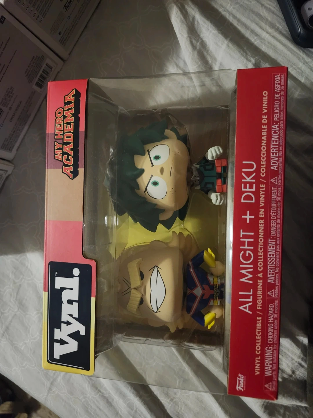 This is a Funko Vynl. set featuring All Might and Deku from My Hero Academia. Figures are vinyl collectibles. Recommended for ages 36 months and up.
