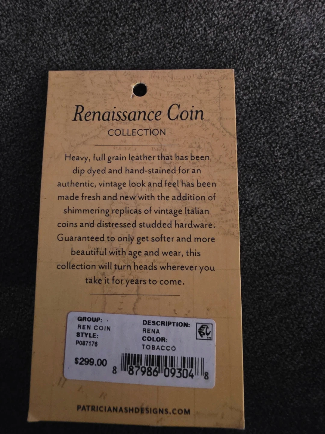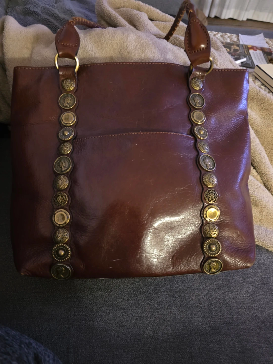 Patricia Nash Renaissance Coin Collection, full grain leather bag with vintage coin pattern .