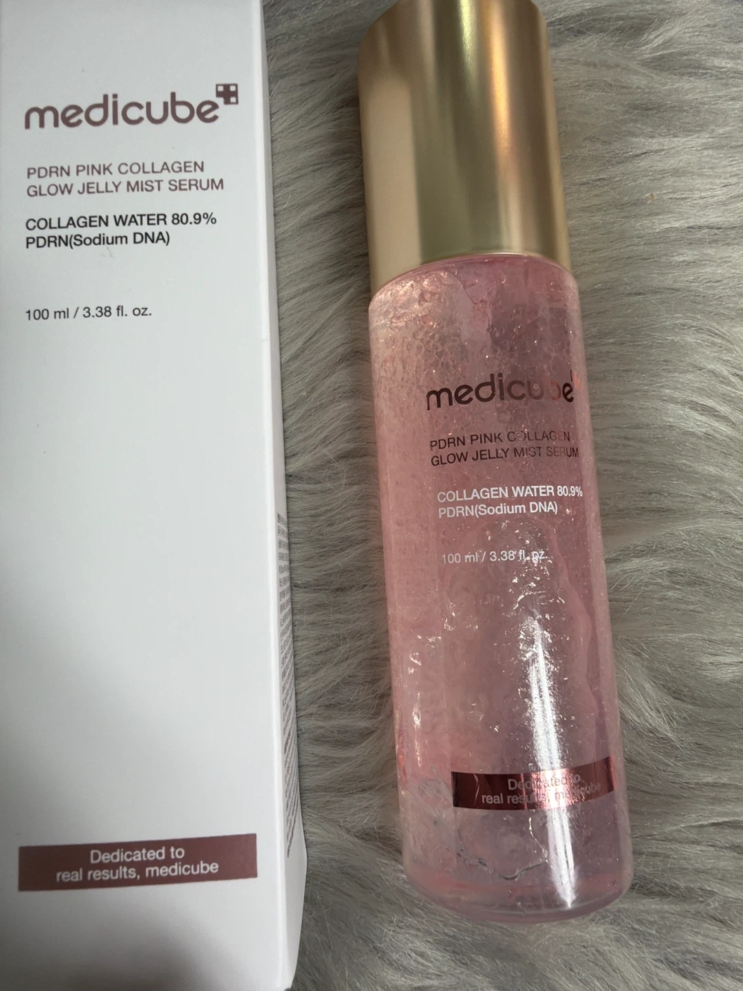 Medicube PDRN Pink Collagen Glow Jelly Mist Serum. Collagen water 80.9% PDRN(Sodium DNA). 100 ml / 3.38 fl. oz. This mist serum is dedicated to real results.