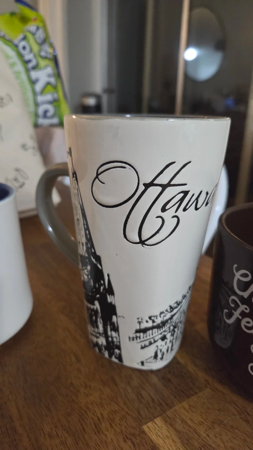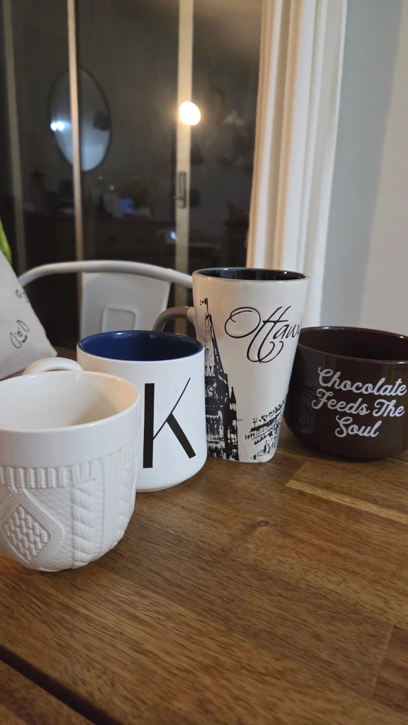 All of these 4 mugs are brand new, and ready to be used for your breakfast.. Take them all for the price.