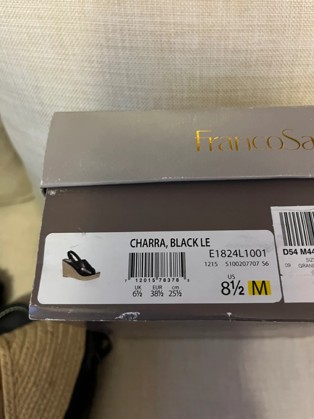 These Franco Sarto espadrille wedges are brand new. They feature a stylish black leather criss-cross strap design. Size 8. Regular $114.99. Pet and smoke free home. Pick up in Stittsville.