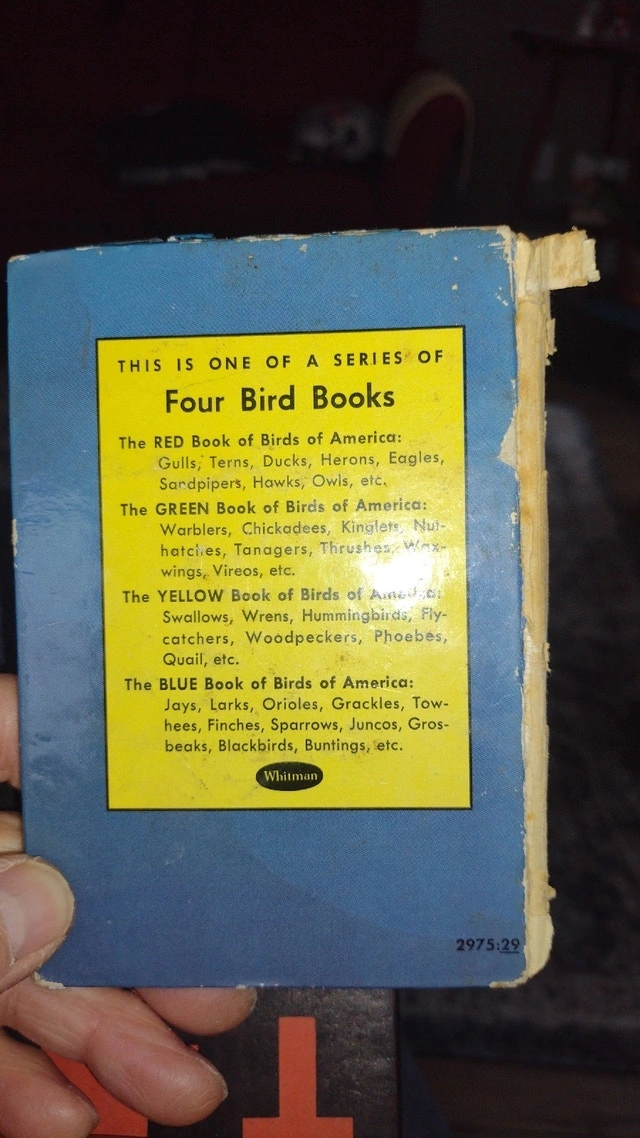 Classic pocket-sized nature guide from the 1930s, focusing on songbirds and common perching birds like jays, larks, orioles, and finches. Features colorful illustrations. The cover art shows American Goldfinches, male and female. The spine is missing as pictured, but the page bindings are solid. Used - Fair condition. Cash and cashless payments accepted. Available for curbside pickup.
