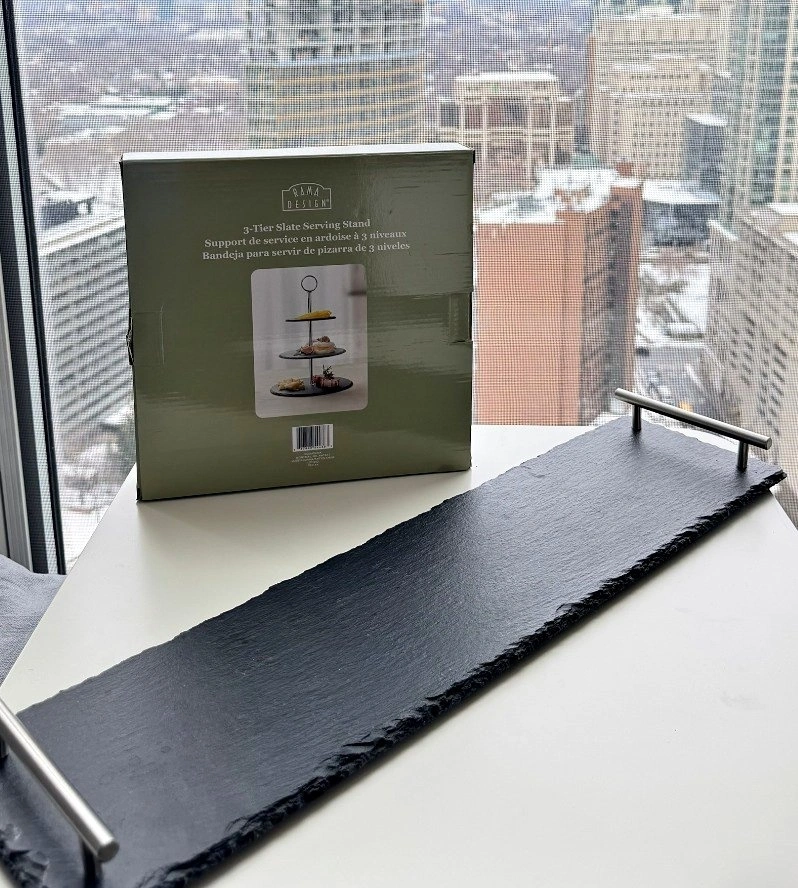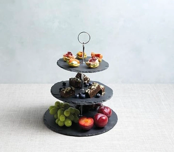 Serving Tray Bundle – Slate Display Board + 3-Tier Serving Stand