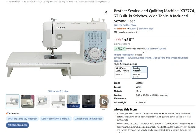 Brother Sewing and Quilting Machine, XR3774, 37 Stitches