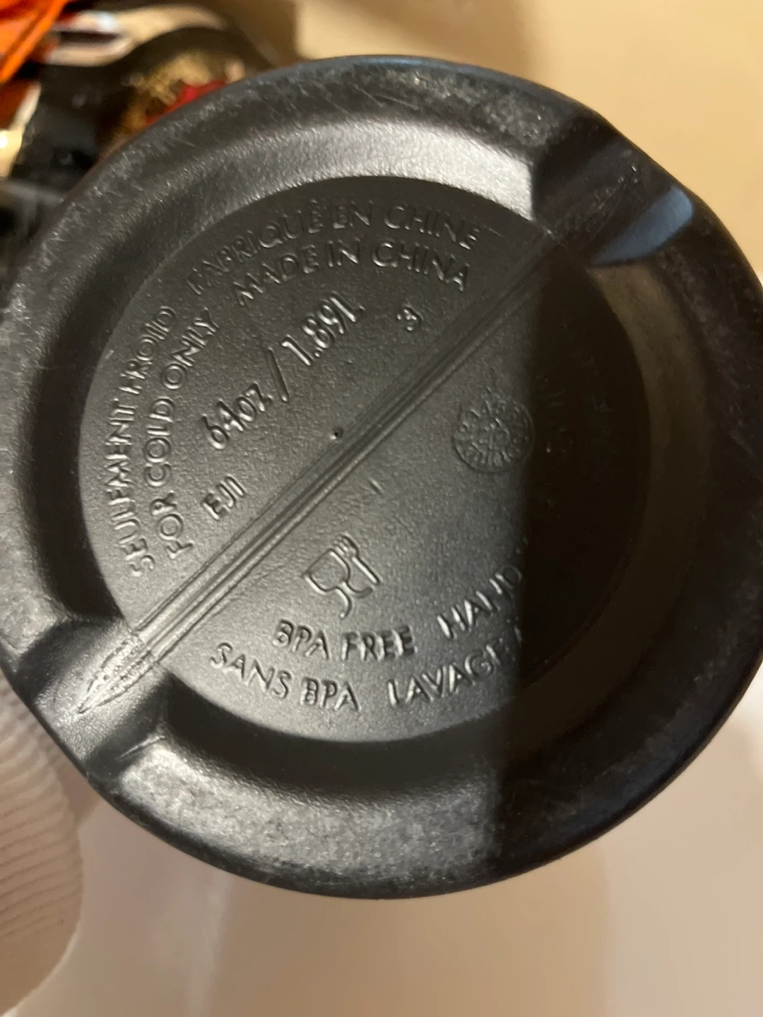 Black Nike shaker bottle with "JUST DO IT." slogan. It has a convenient carrying handle and a flip-top lid. Made of durable plastic. 1.89 L /64 oz CASH only