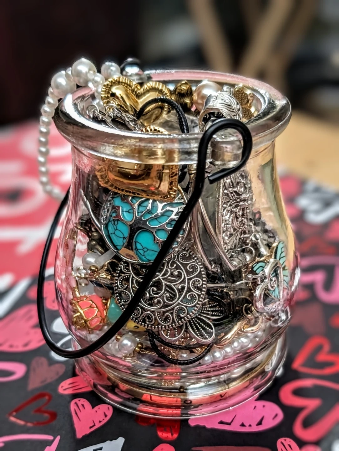 Assorted Jewellery in Glass Jar