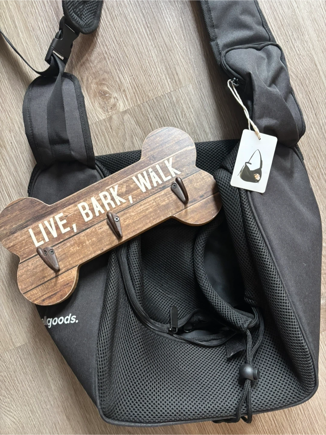 • “Live, Bark, Walk” wooden leash/key holder (3 hooks)