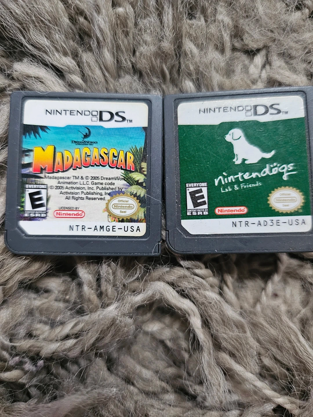 Two Nintendo DS game cartridges included: Madagascar and Nintendogs Lab & Friends.