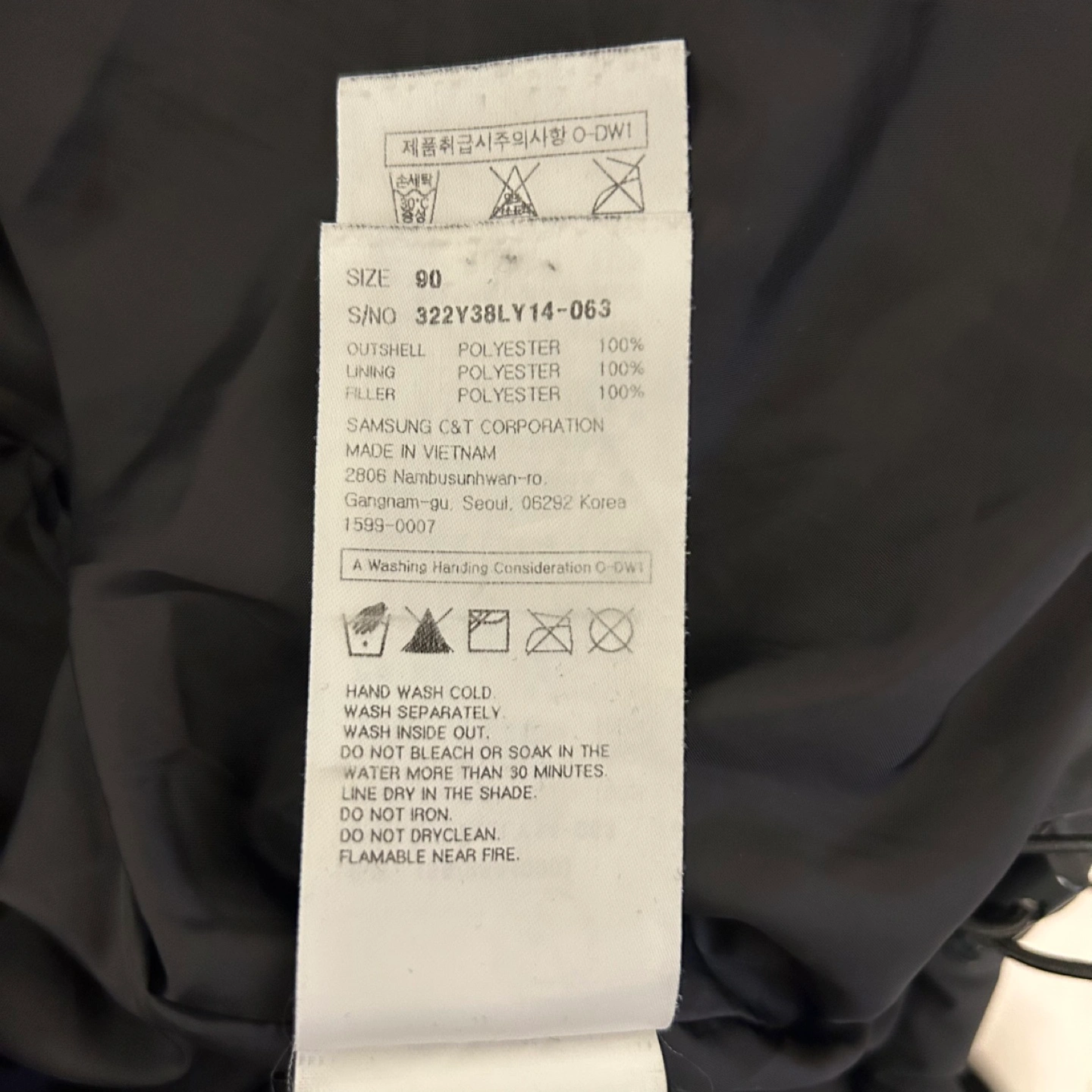 The outshell, lining, and filler are all 100% polyester.