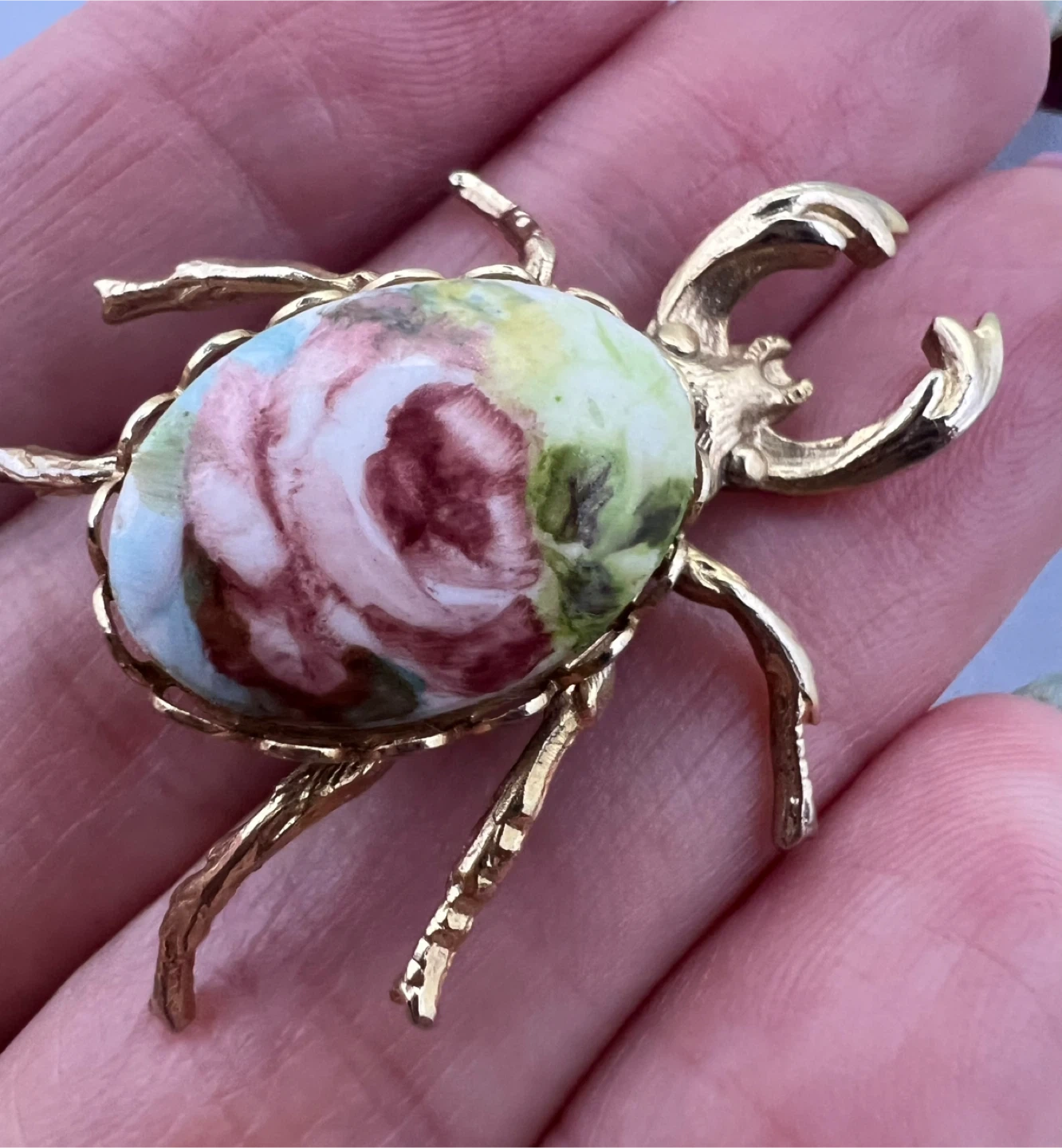 Floral Stag Beetle Brooch