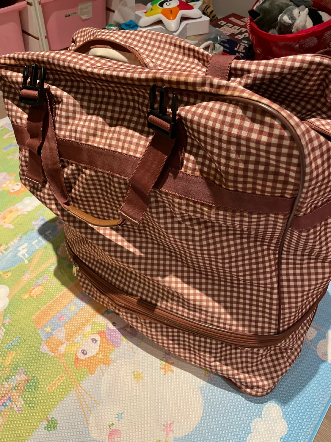 Buy & SellTravel BagTravel Bag$15Classic brown and white gingham check duffel bag. It has sturdy handles and zippers for secure closure. A great bag for weekend trips or storage!WHERE TO MEETMountain View parkView MapSELLERverifiedMorpheusBurquitlam681 review0 chats·0 favorites·7 viewsSEND CHAT TO SELLERHi Morpheus! I’m interested in your listing.Hi Morpheus! I’m interested in your listing.Get the Karrot app to chatSign In to chat