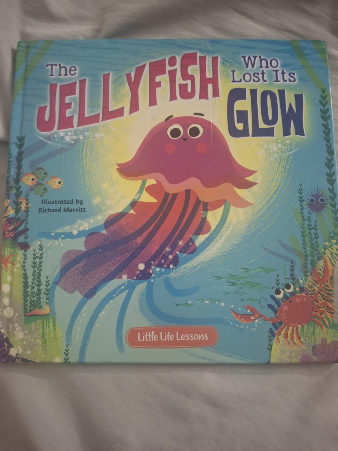 A children's book titled 'The Jellyfish Who Lost Its Glow'. It's part of the 'Little Life Lessons' series and illustrated by Richard Merritt. This book is great for teaching young kids about important life lessons.