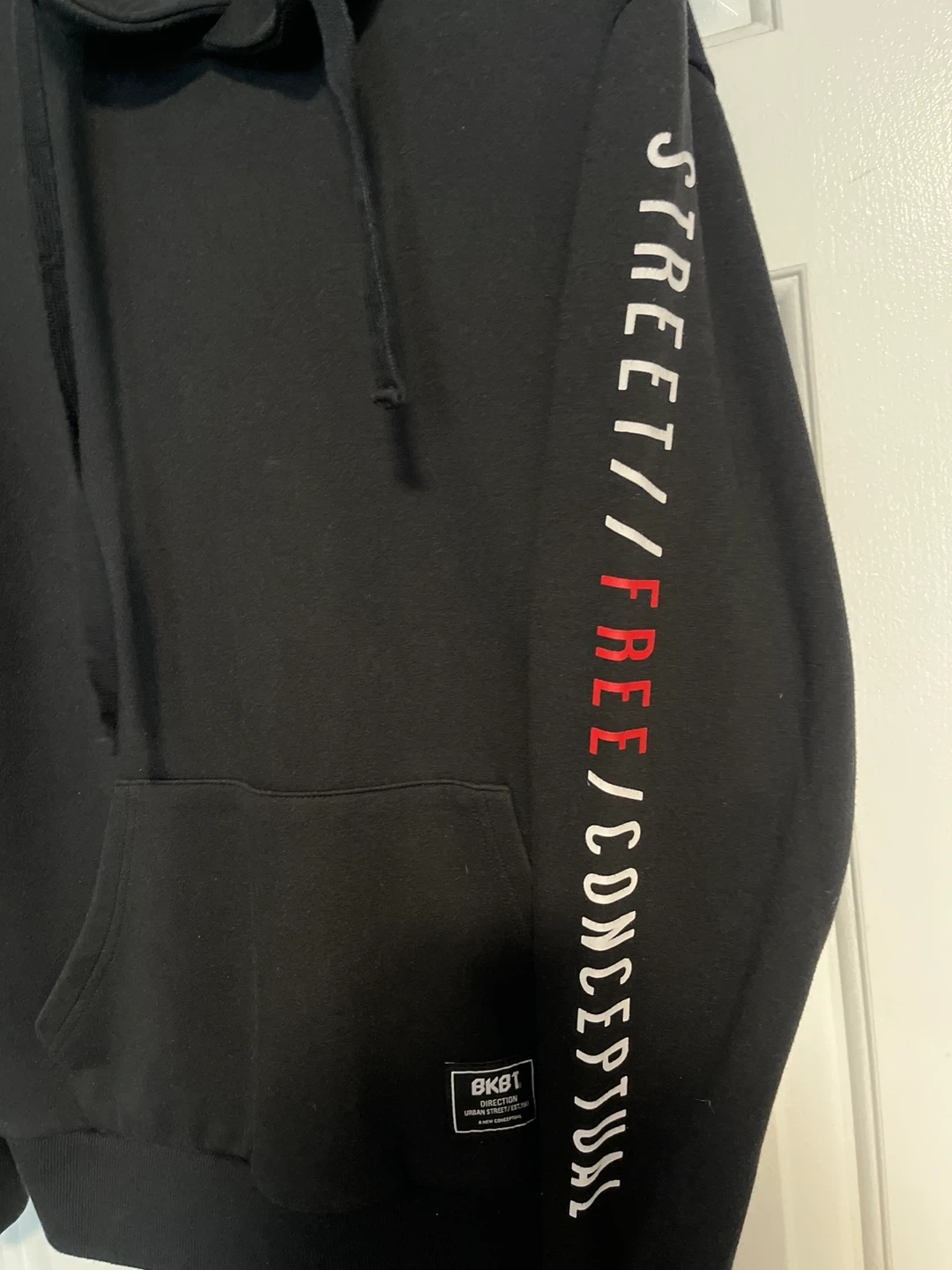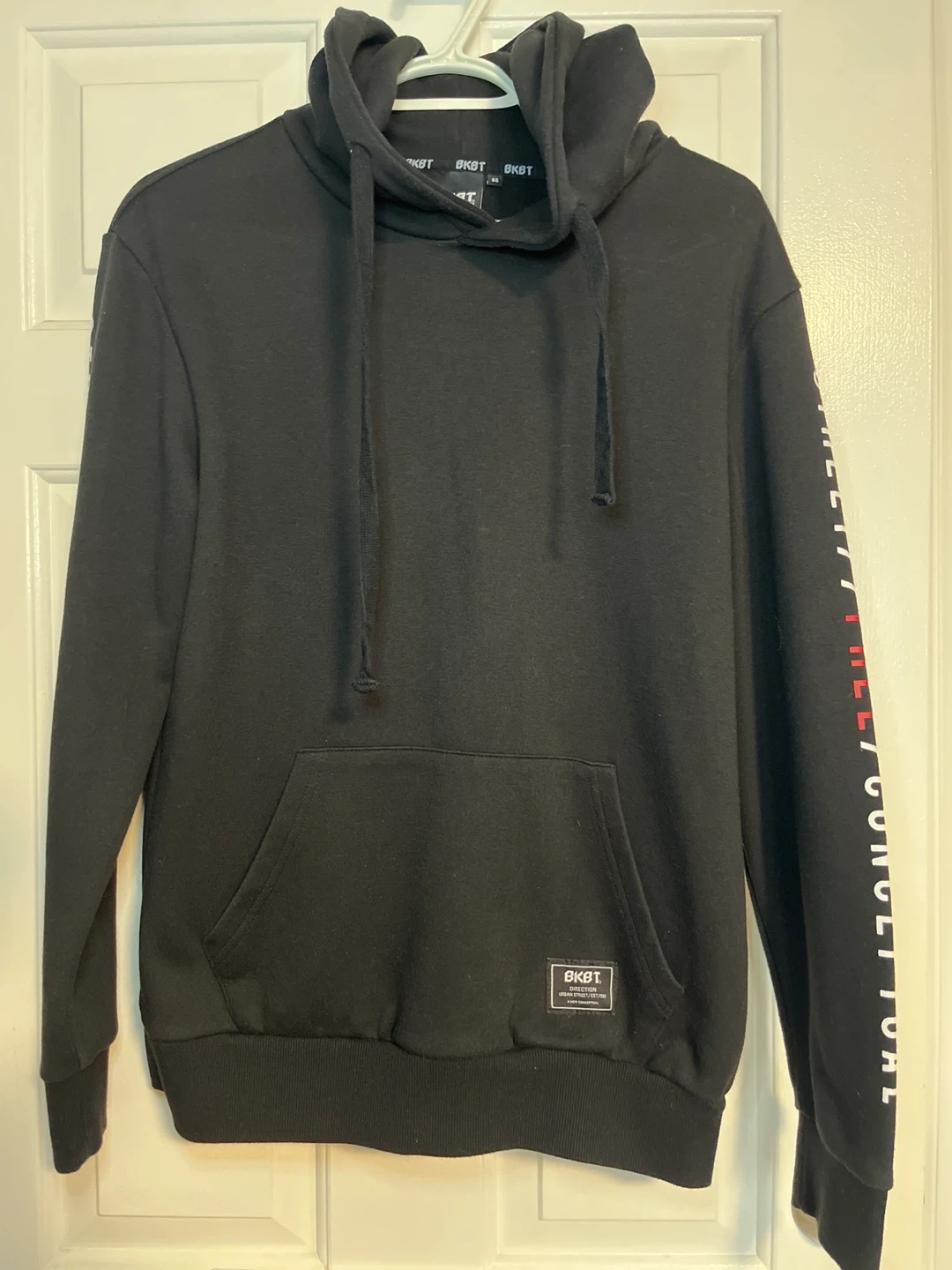 Selling a BKBT Bunker Buster hoodie in black. It's in great shape and features the BKBT logo. The size is S, and it has a cool design on the sleeves! Bought in Korea.