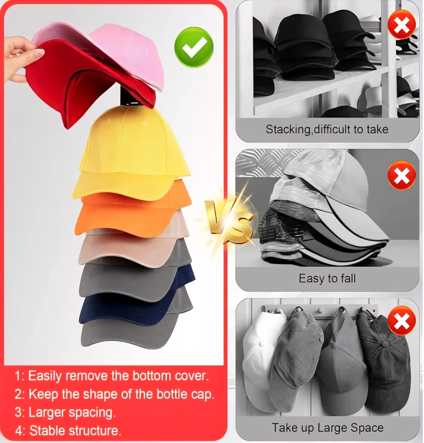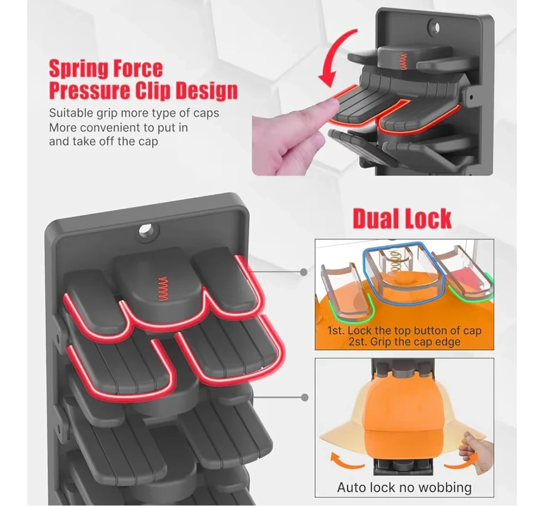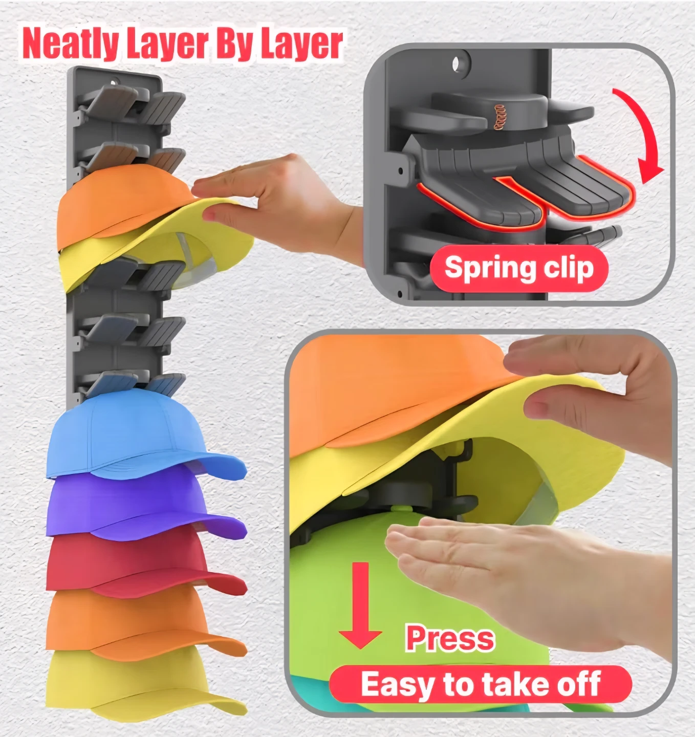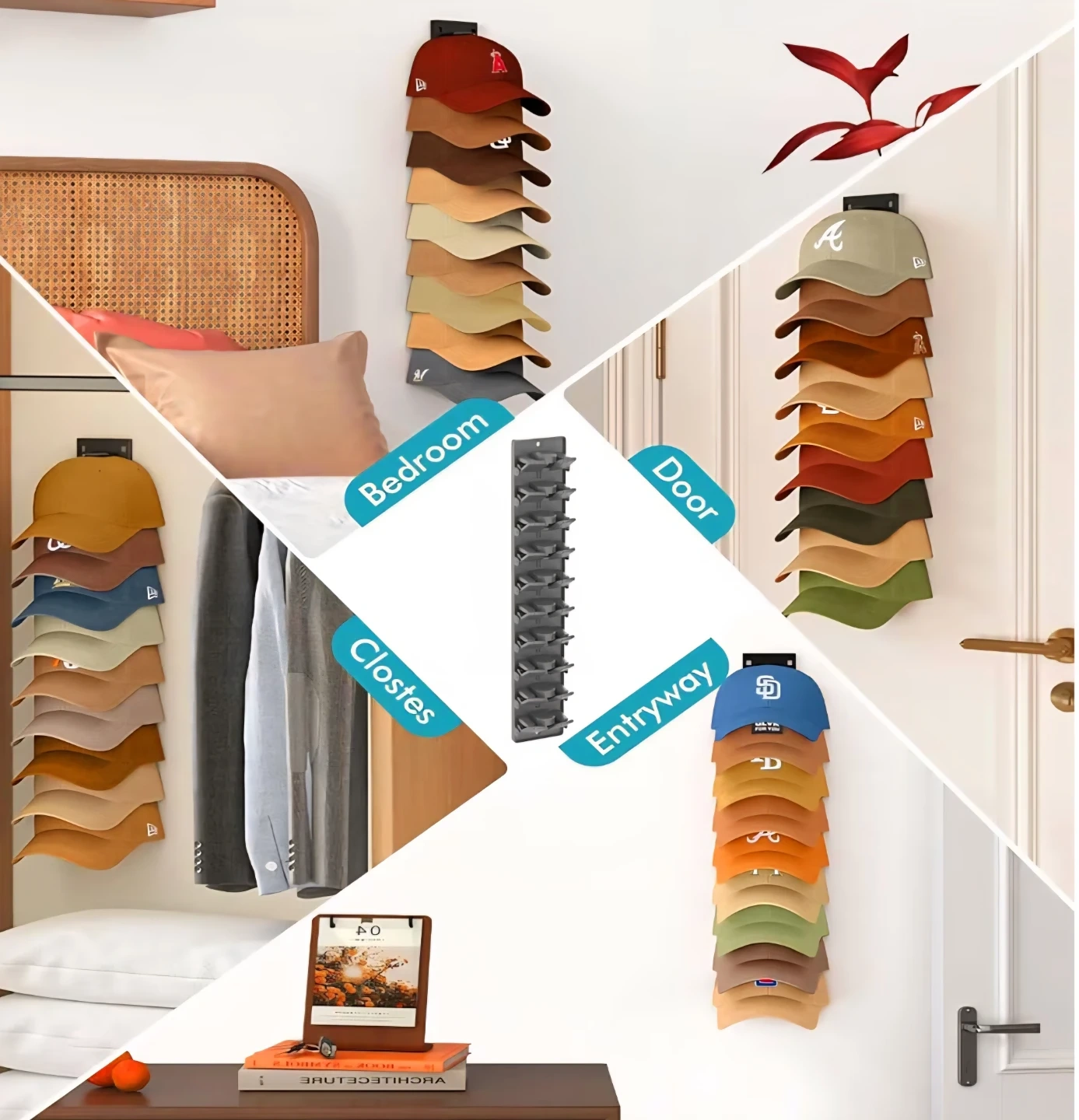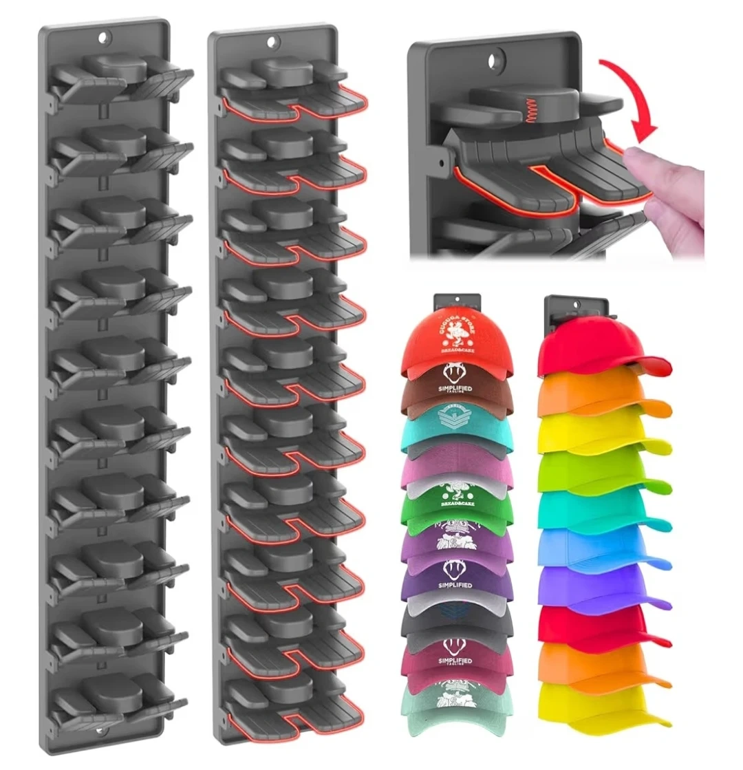 Hat Organizer for Baseball Caps, Wall Mounted Hat Rack with Strong Adhesive, 2 Pack Hat Storage Display Holder, Multilayer Hat Hooks for Door, Bedroom, Closet & Garage, Space Saving Hat Hanger (Black)