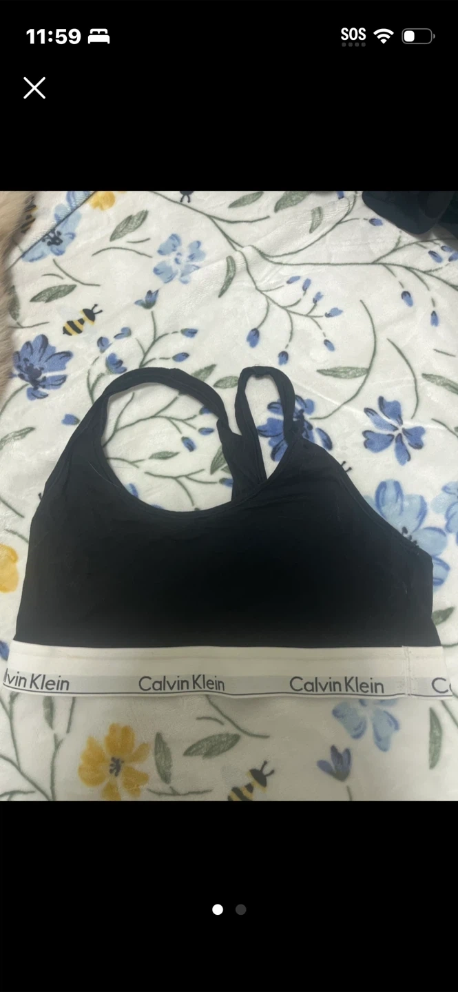 Black Calvin Klein sports bra with a signature branded elastic band. It's made for comfort and support. This bra is great for light workouts or everyday wear! Size large pick up. Cash only