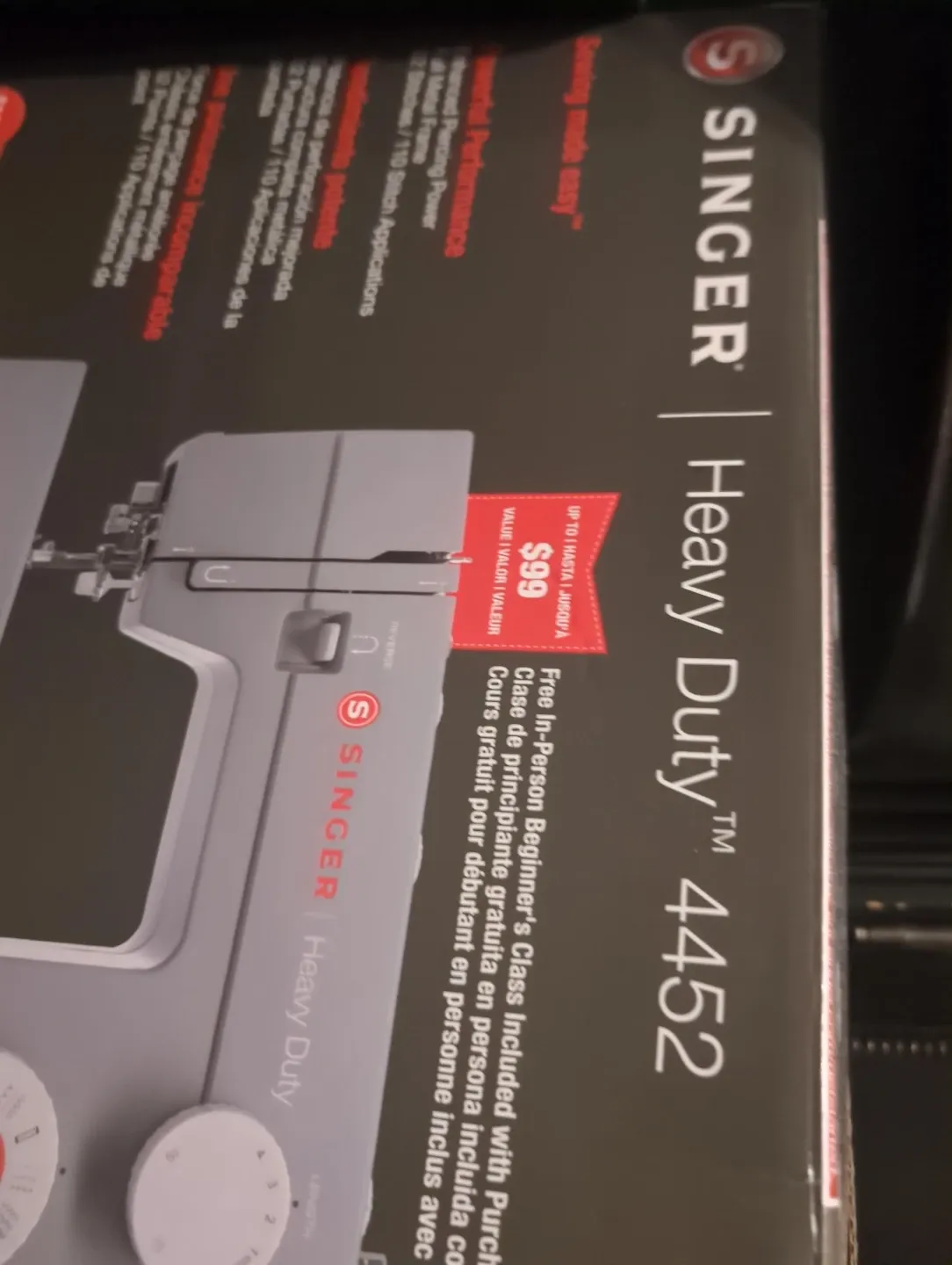 SINGER Heavy Duty 4452 sewing machine with powerful performance. It has 110 stitch applications and a metal frame. A free beginner's sewing class is included with purchase!