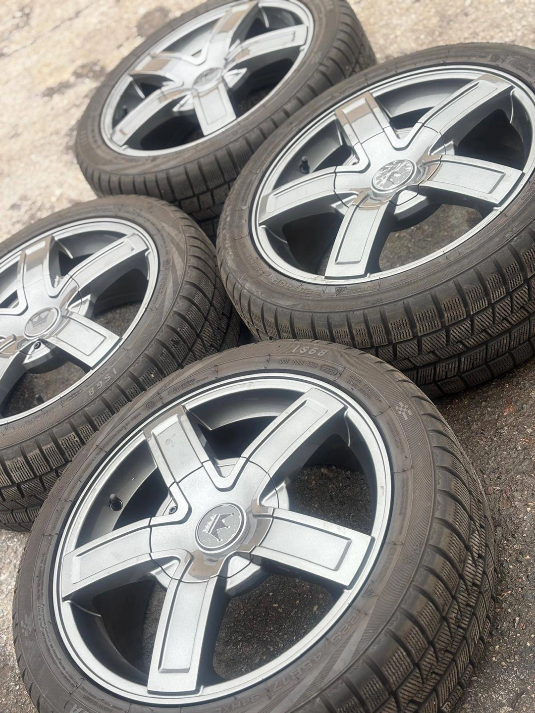 Set of four Brand NEW Authentic 17 inch MAZZI 388 wheels with 225 45 R17 Wanli wintermax A1 winter / snow tires mounted and balanced on them
