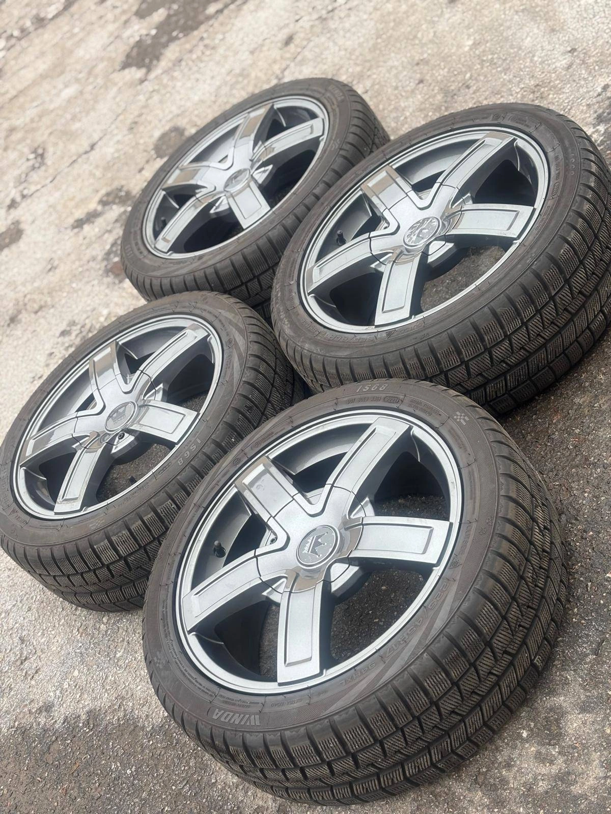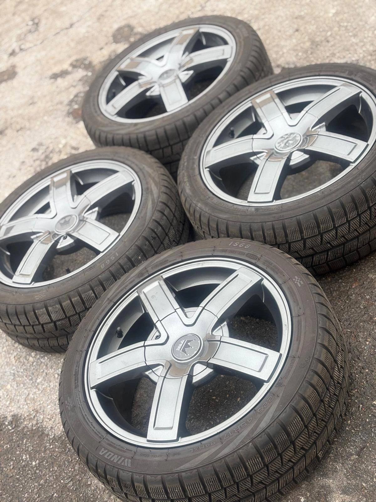 Set of four Brand NEW Authentic 17 inch MAZZI 388 wheels with 225 45 R17 Wanli wintermax A1 winter / snow tires mounted and balanced on them