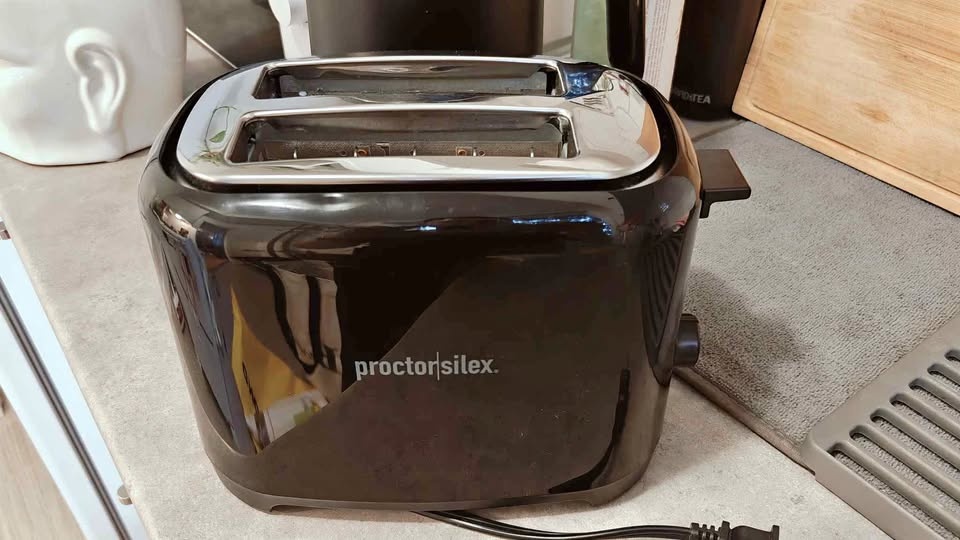 Selling a Black Proctor Silex 2 Slice Toaster. It's a nice compact size, and has been well kept, but the text on the cancel button has been worn off. The inside has been cleaned to the best of my ability. The photos show it in its current condition with any visible wear shown.