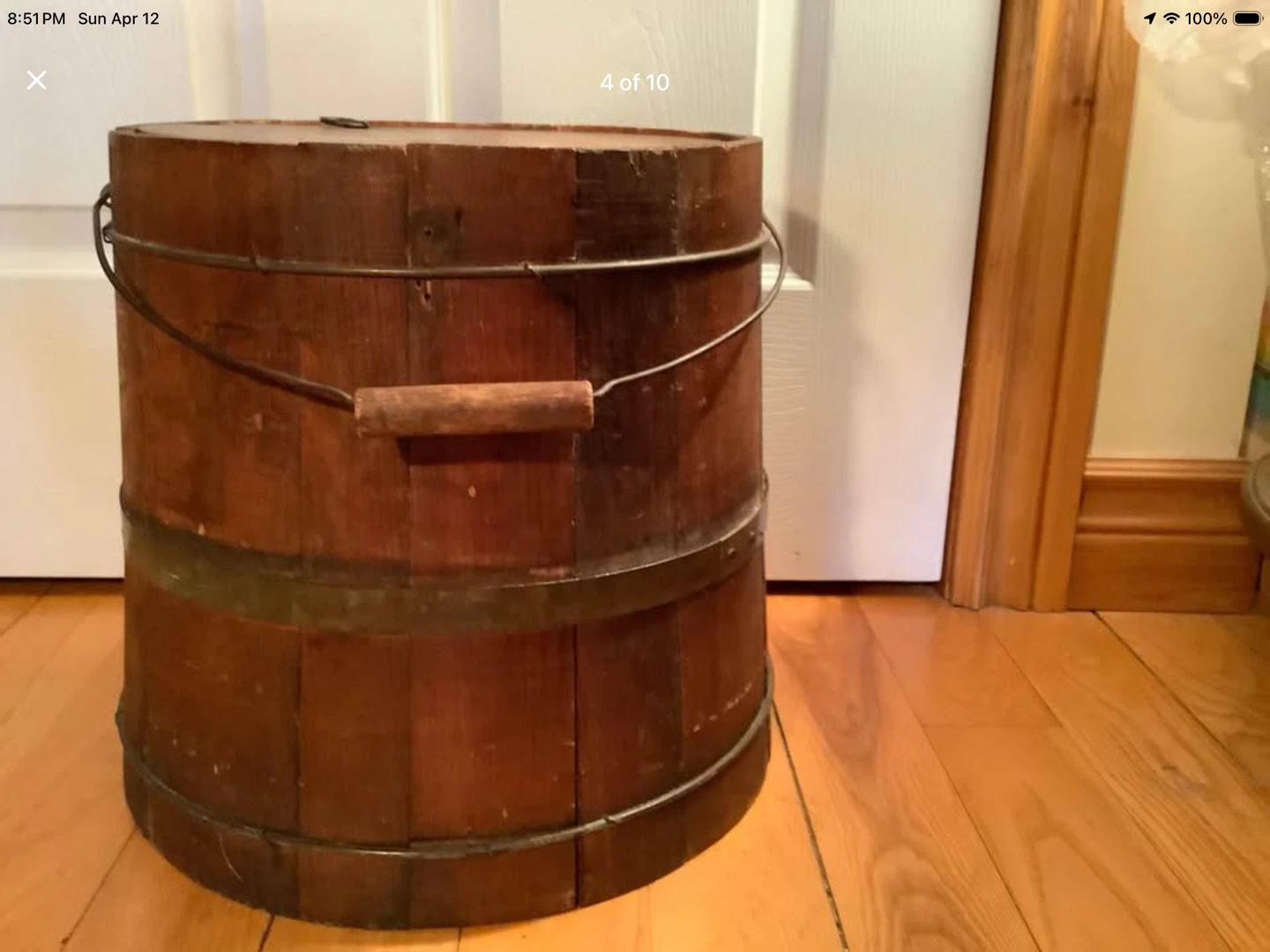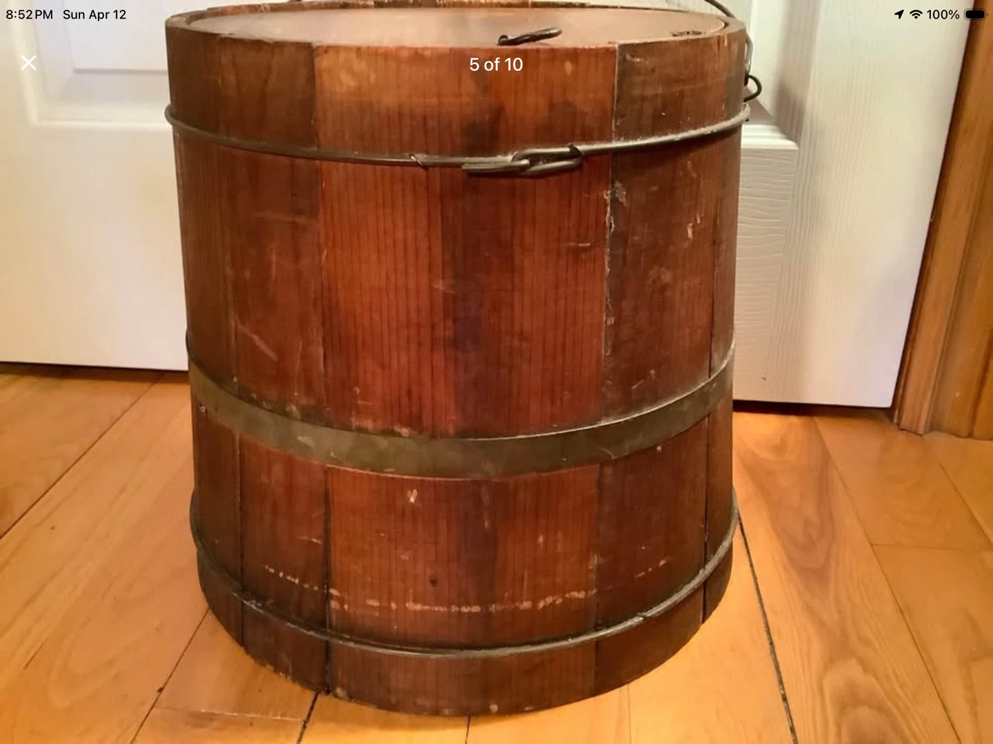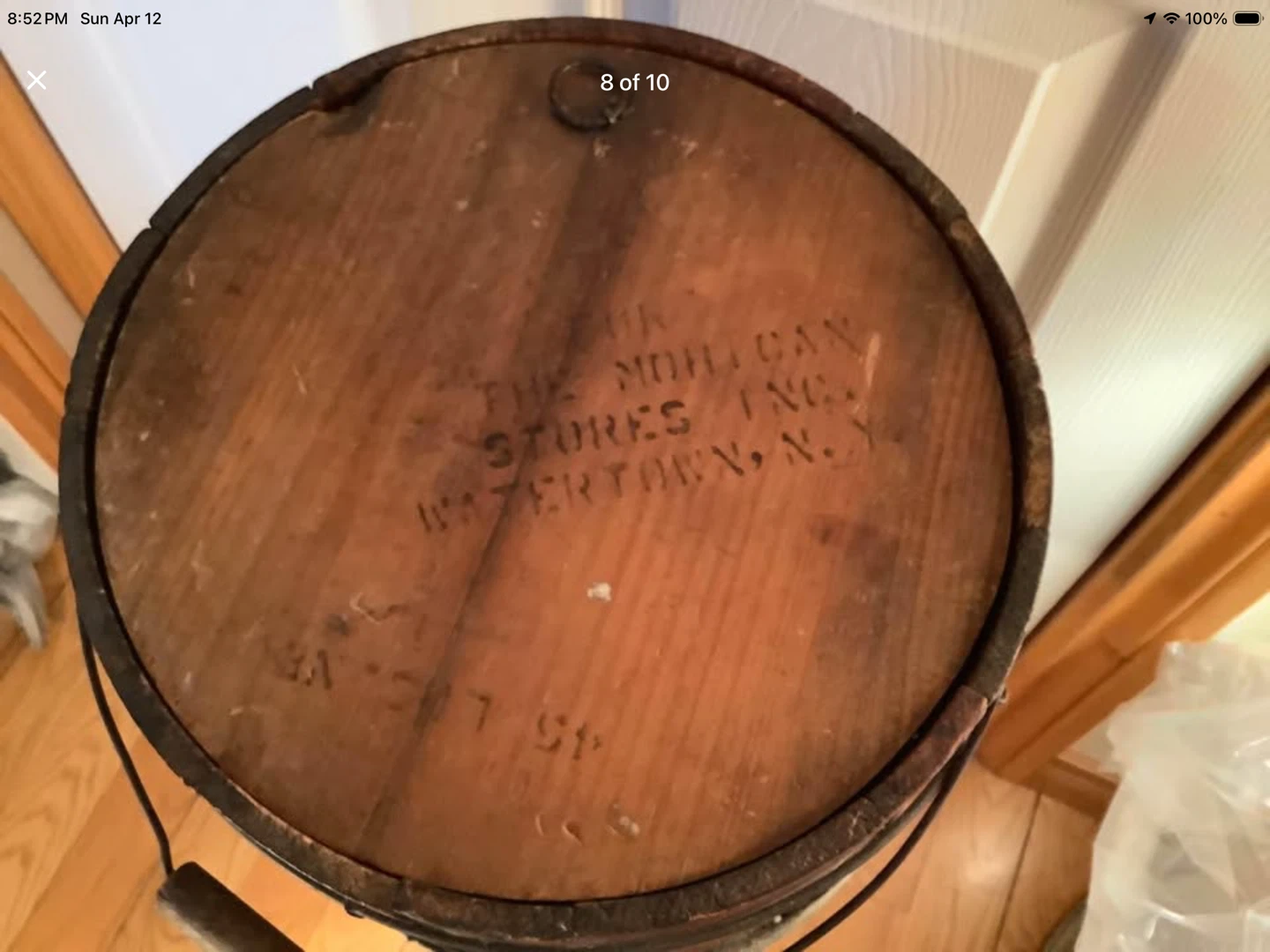 Lg Antique Lidded Firkin Bucket “The Mohican Stores Inc”