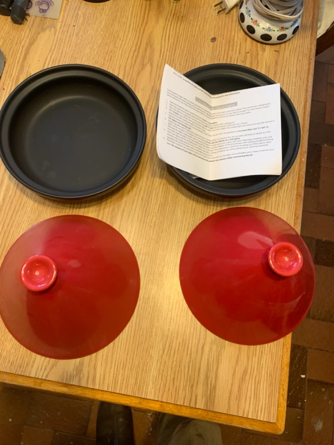 Buy & SellTagine Pot SetTagine Pot Set$60Selling a tagine pot set with two red lids and two black bases. Perfect for cooking delicious Moroccan dishes! The set comes with instructions.WHERE TO MEETClaremontView MapSELLERverifiedMarkoClaremont600 reviews0 chats·0 favorites·1 viewsSEND CHAT TO SELLERHi Marko! I’m interested in your listing.Hi Marko! I’m interested in your listing.Get the Karrot app to chatSign In to chat