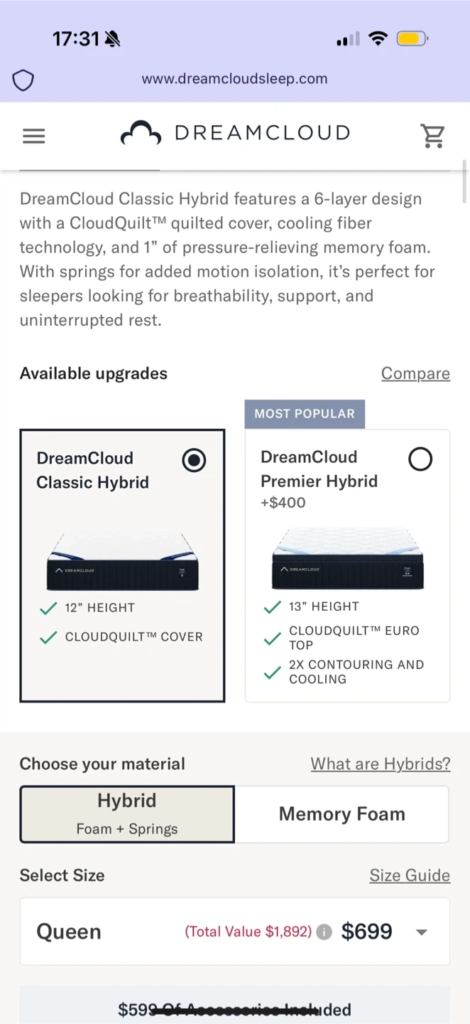 a brand new DreamCloud Classic Hybrid mattress in queen size! Decided to get a king bed frame after unboxed it, so let go lower than half of the original price. Pick up *Long Island Mineola*. This mattress features a CloudQuilt cover for comfort and breathability, memory foam for contouring pressure relief, and innerspring coils for motion isolation with edge support. It's a hybrid foam and springs mattress with a 12" height. Perfect for sleepers looking for breathability, support, and uninterrupted rest. Pick up from Long Island Mineola.