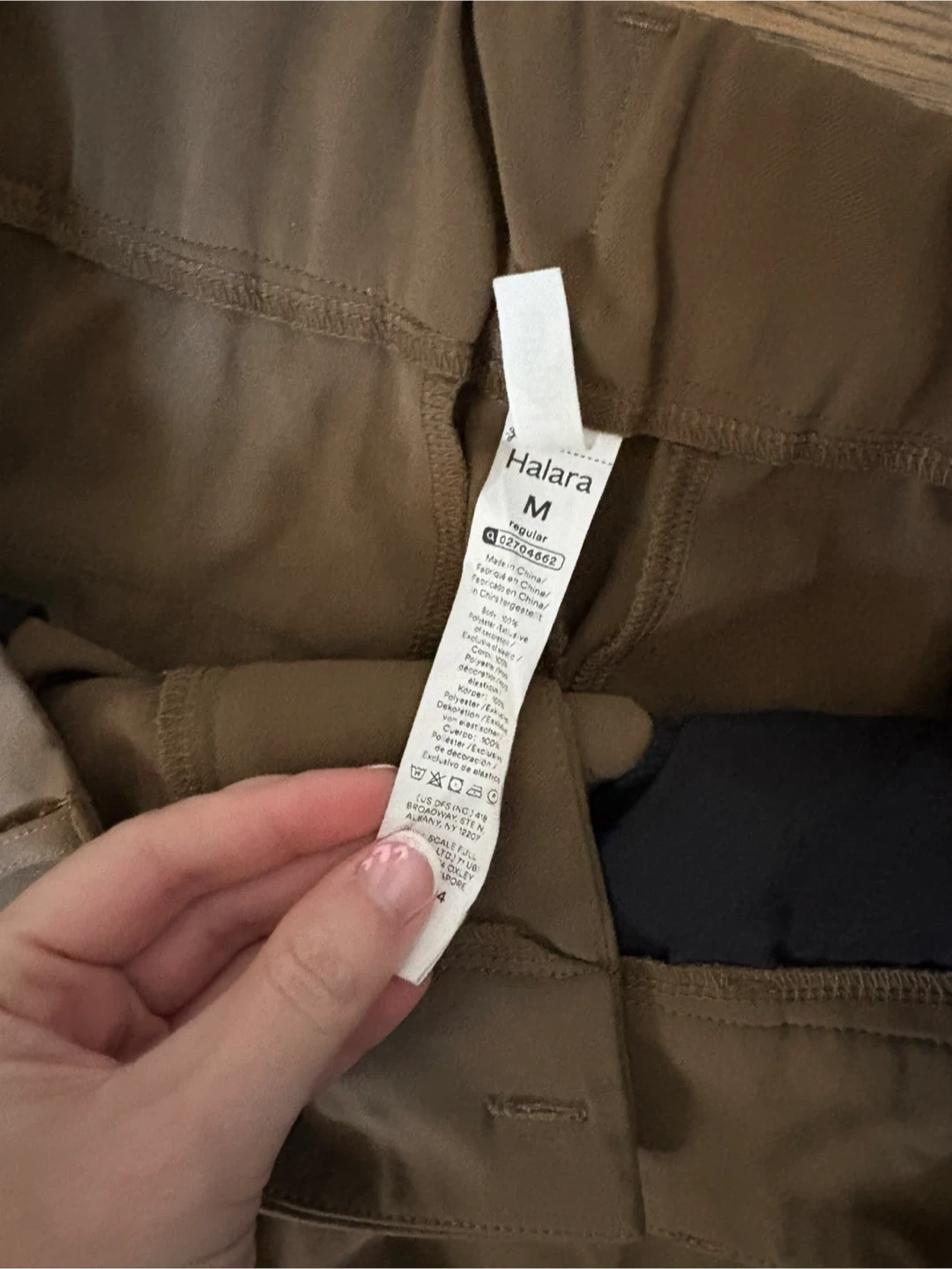 These Halara trousers are size medium in a regular fit. They're made from a blend of polyester and spandex. These pants are ideal for everyday wear. Very good condition only worn once