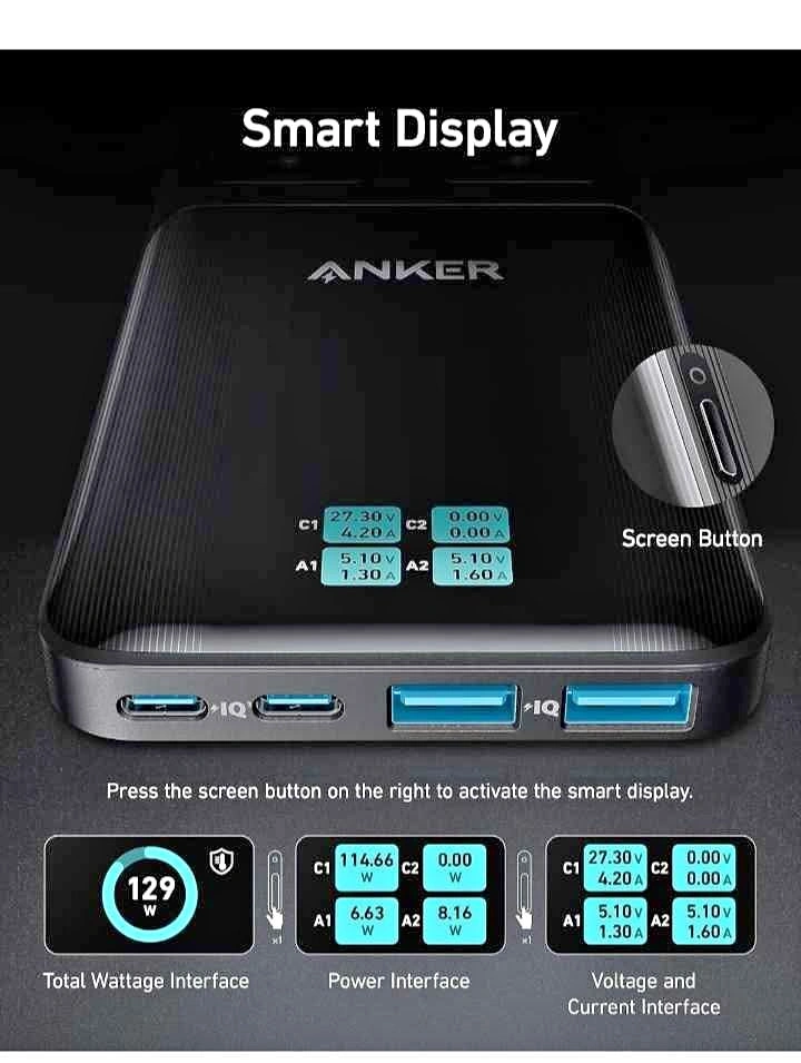 Anker 727 Charging Station (GaNPrime 100W), compact power strip for travel, work, 5 ft detachable extension cord with 2 outlets and 4 USB ports, for iPhone 14, Samsung.