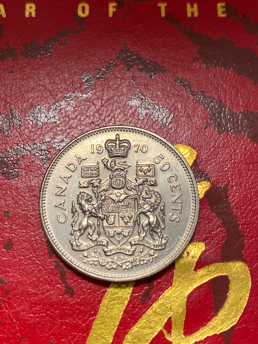 This is a 1970 Canadian 50 cent coin featuring Queen Elizabeth II on the obverse and the Canadian Coat of Arms on the reverse. It's a standard circulation coin from that year.