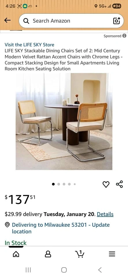These are brand new Chairs in the box. I have 2 sets total of 4 matching chairs. I'm asking $180 for all 4 Chairs.