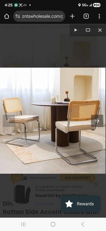Dining Chairs Set of 4: Mid Century Modern Velvet Rattan