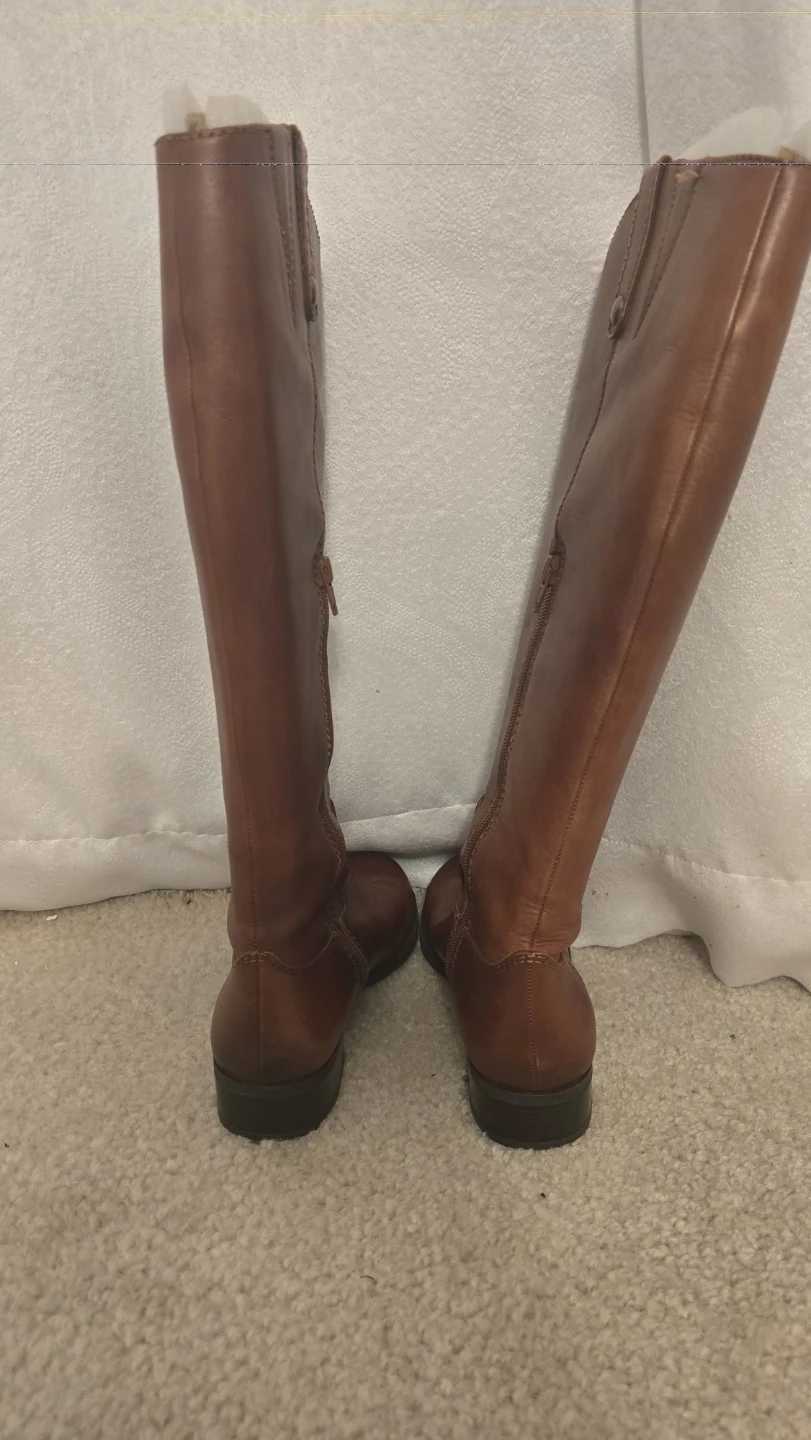 Selling a pair of INC International Concepts riding boots in a lovely brown leather. They are a women's size 6M. These boots have a classic look and are perfect for fall!