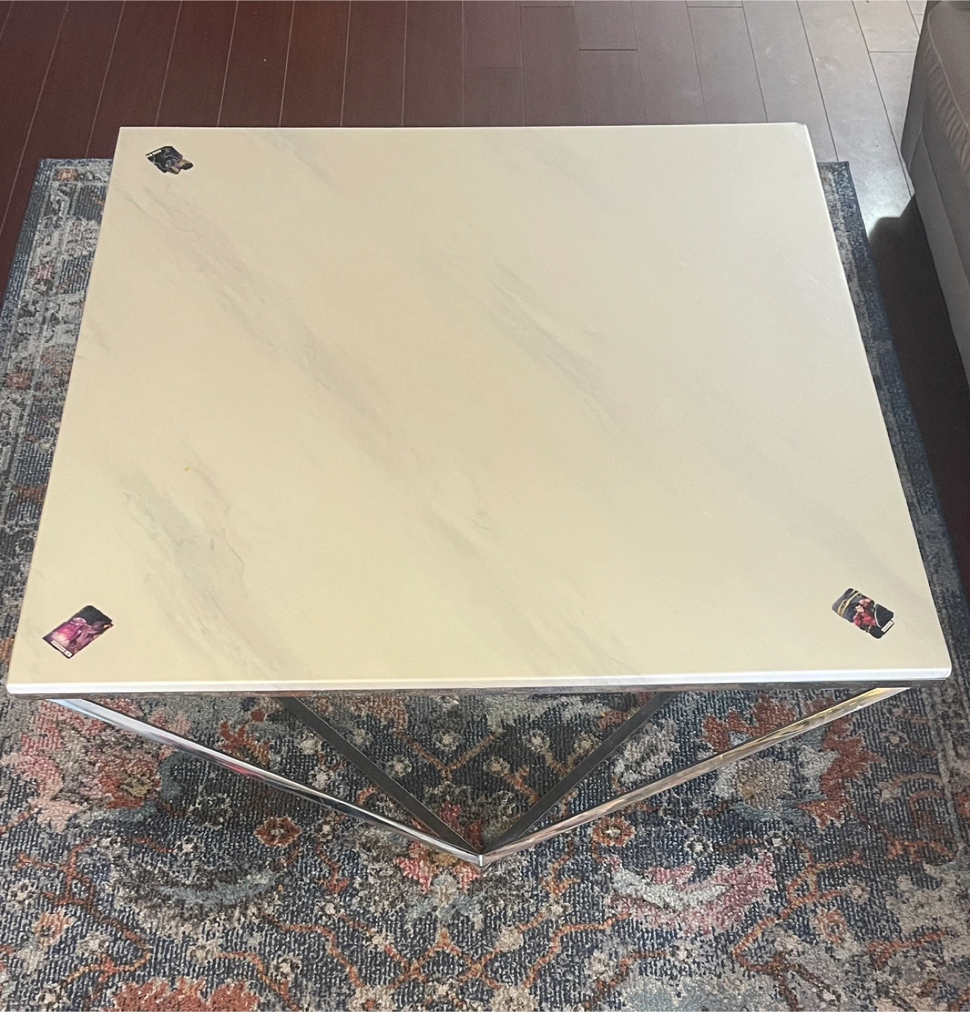 Coffee table (39"), the coffee table is too big for my current space so I am selling it. The marble top is removable and quite heavy, so two people will be needed to move it.