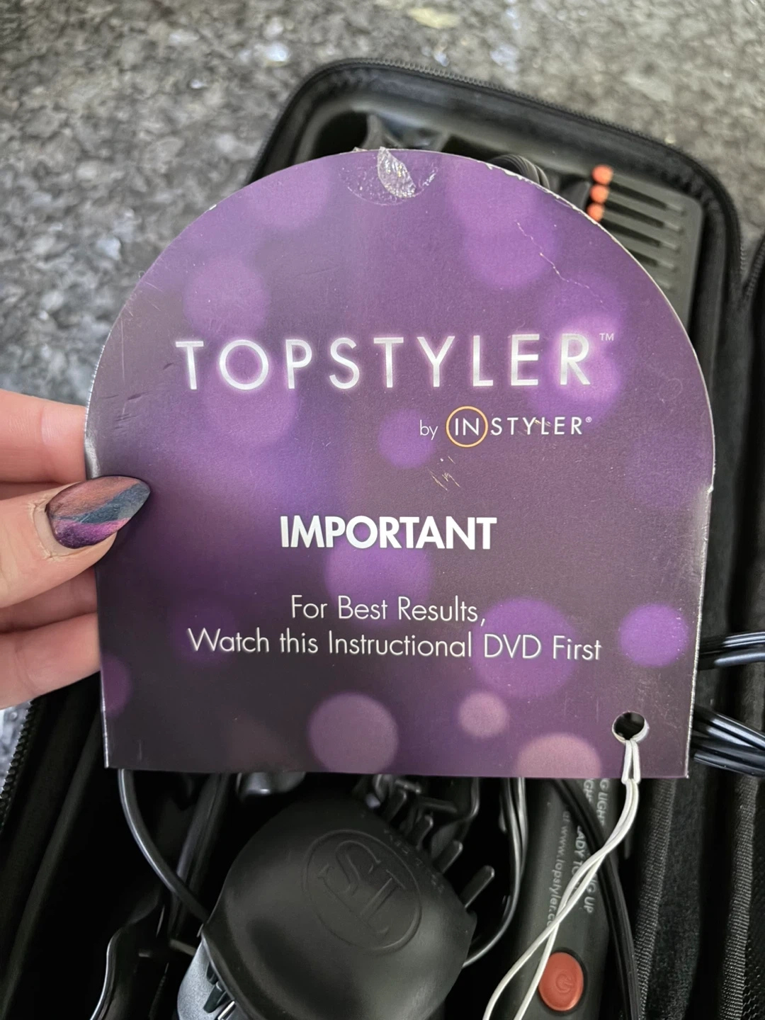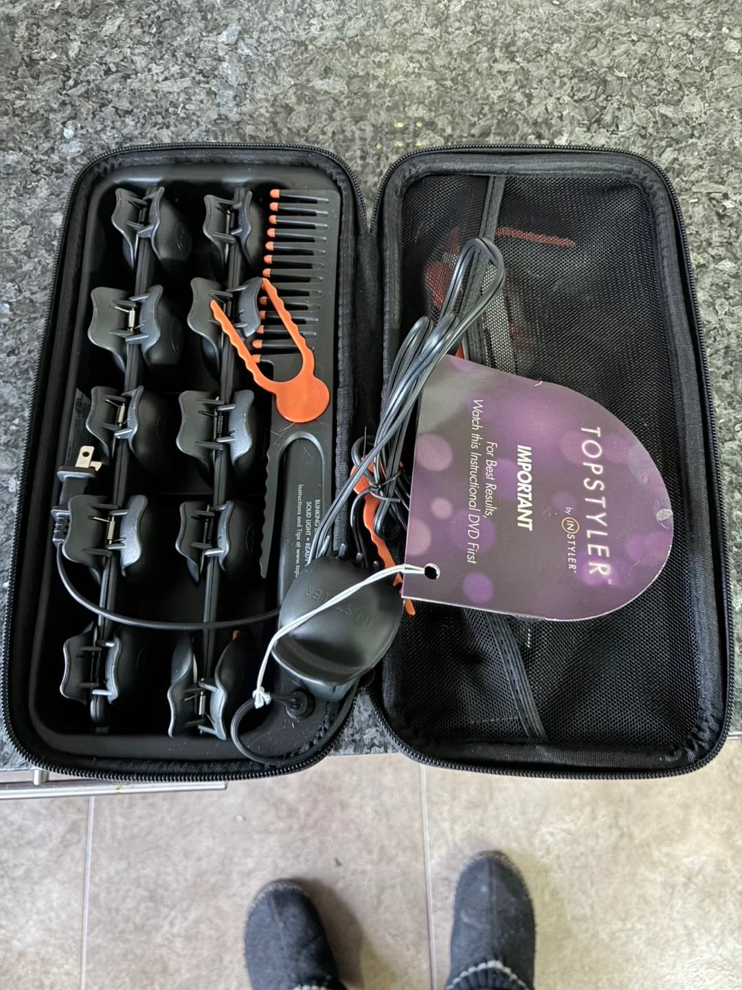Topstyler hair roller set by Instyler. It comes with multiple rollers, a comb, and a storage case. Also includes an instructional DVD. Great for styling your hair!