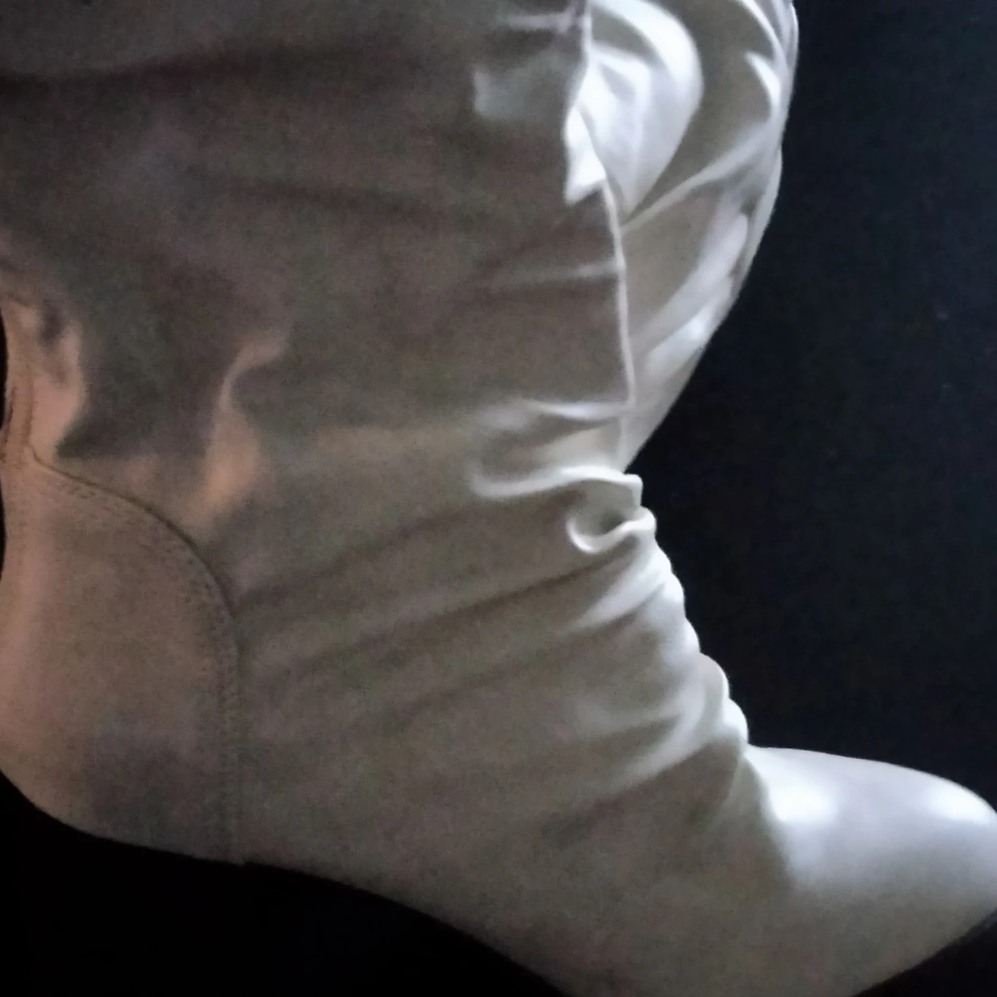 These women's knee-high boots are a creamy, neutral color. They have a slouchy, ruched shaft and a comfortable low heel. Perfect for adding a stylish touch to your fall and winter outfits!