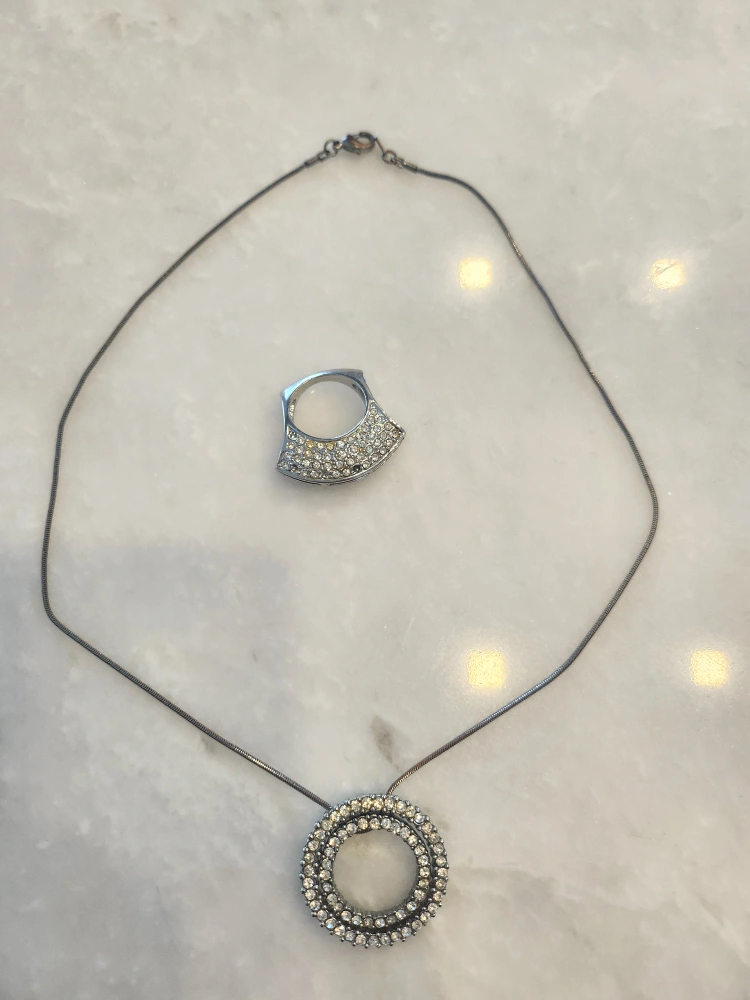 Selling a lovely necklace and ring set! Both pieces feature a silver-tone metal and sparkly stones. They are in great condition and ready to add some sparkle to your outfit