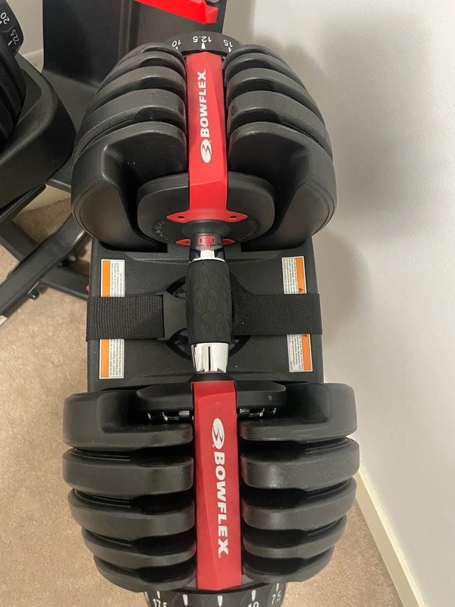 The Bowflex SelectTech 552 Dumbbells bring you powerful results with the turn of a dial. This strength training system replaces 15 sets of weights and allows you to adjust them between 5 to 52.5 lbs as you gradually increase your strength. Features easy to use selection dials for weight adjustment with a patent pending locking mechanism that locks only the weight you select. Features Weight range 5 to 52.5 lbs (2.27 to 23.8 kg) for each dumbbell Adjusts in 2.5 lb increments 15 weight settings: 5, 7.5, 10, 12.5, 15, 17.5, 20, 22.5, 25, 30, 35, 40, 45, 50, and 52.5 lbs