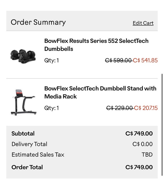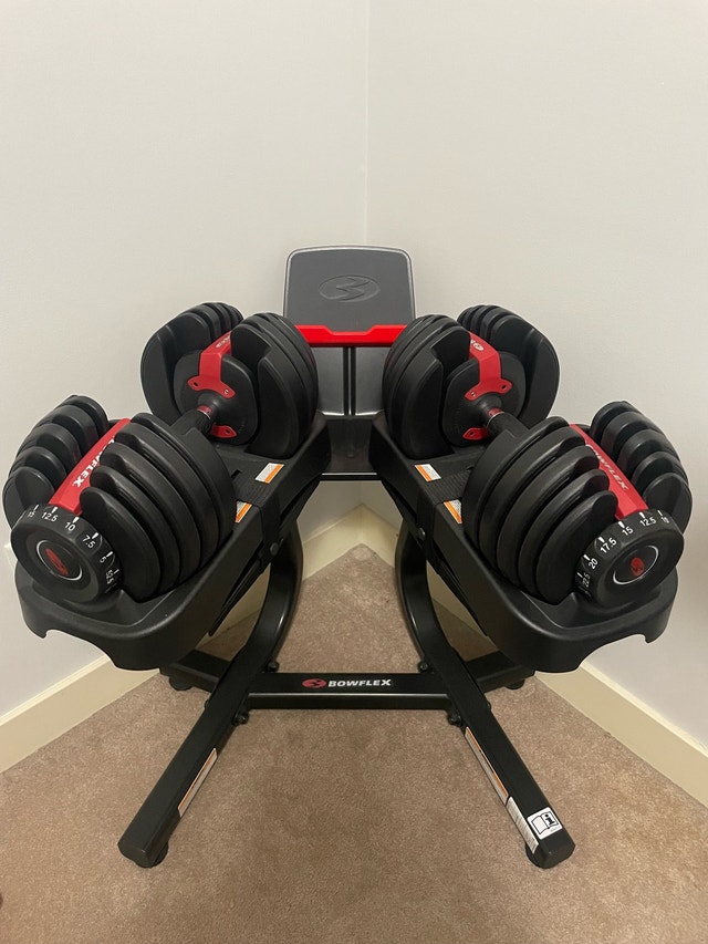 The Bowflex SelectTech 552 Dumbbells bring you powerful results with the turn of a dial. This strength training system replaces 15 sets of weights and allows you to adjust them between 5 to 52.5 lbs as you gradually increase your strength. Features easy to use selection dials for weight adjustment with a patent pending locking mechanism that locks only the weight you select. Features Weight range 5 to 52.5 lbs (2.27 to 23.8 kg) for each dumbbell Adjusts in 2.5 lb increments 15 weight settings: 5, 7.5, 10, 12.5, 15, 17.5, 20, 22.5, 25, 30, 35, 40, 45, 50, and 52.5 lbs