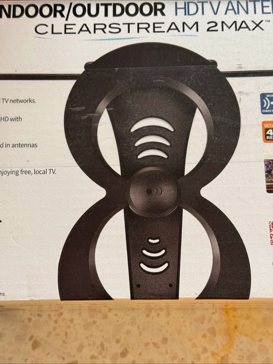 Selling an Antennas Direct ClearStream 2MAX Indoor/Outdoor HDTV Antenna! It's in great condition and comes with all the components and the original box. This antenna is multi-directional and supports UHF VHF, 4K 8K UHD NEXTGEN TV with a 20-inch mast. Originally bought for $163.59