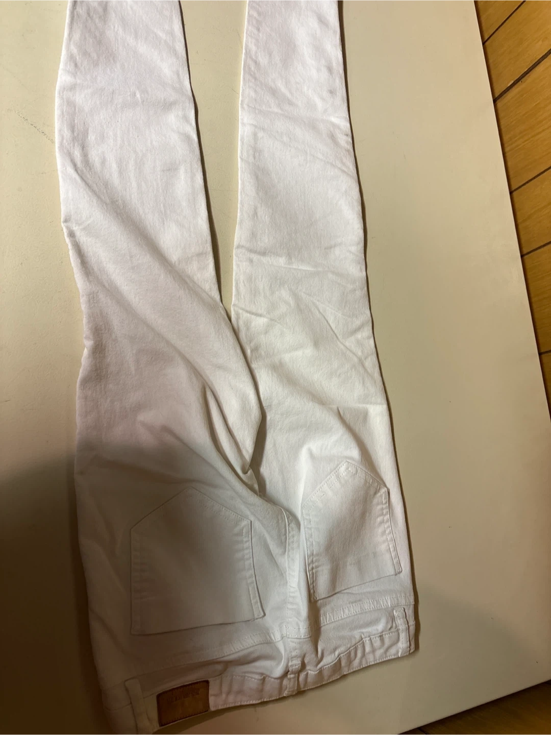 Selling a pair of Zara Basic Dept white moto jeans in size 34. They have a stylish moto design with zipper details at the ankles. They're in great shape and ready for a new owner!