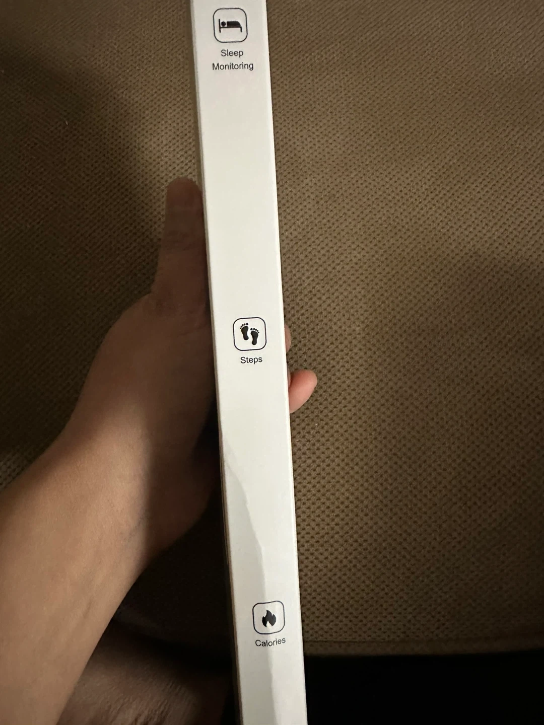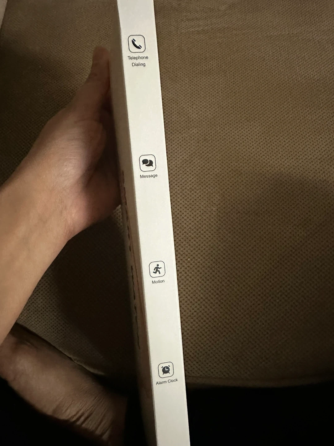 This is a smart watch fitness tracker. It supports telephone dialing, message notifications, and motion tracking. It also includes sleep monitoring and calorie tracking.