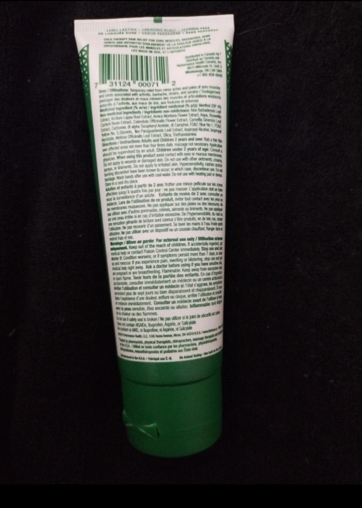 Fast-acting menthol pain relief gel. Opened but at least 75% full. 3 fl oz / 89 mL tube. Great for muscle aches and pains.