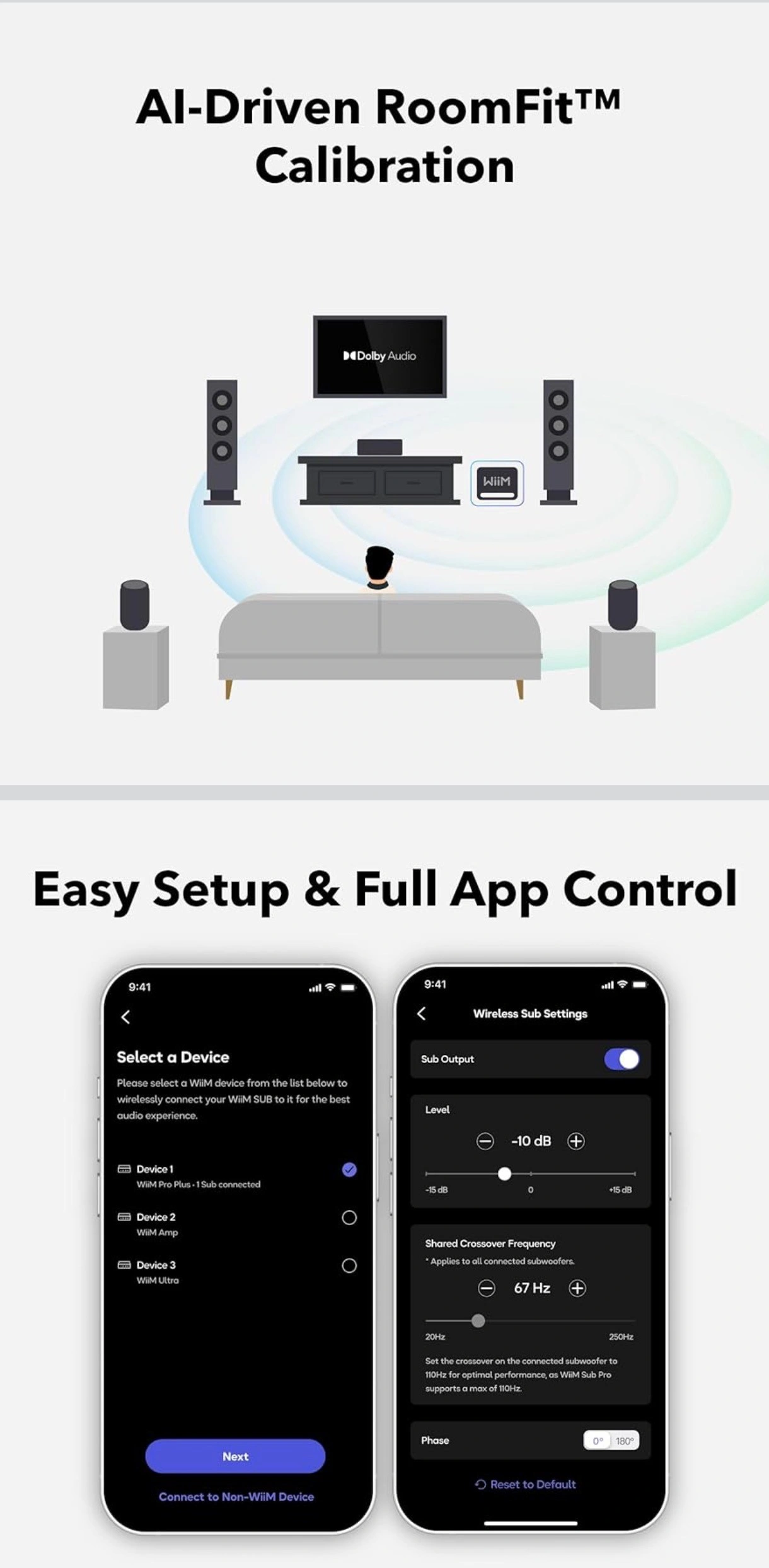 Seamless WiiM & Multi-Room Integration – Pairs wirelessly with WiiM streamers, amps and speakers or joins any multi-room group, filling every corner with synchronized, cinema-grade bass.