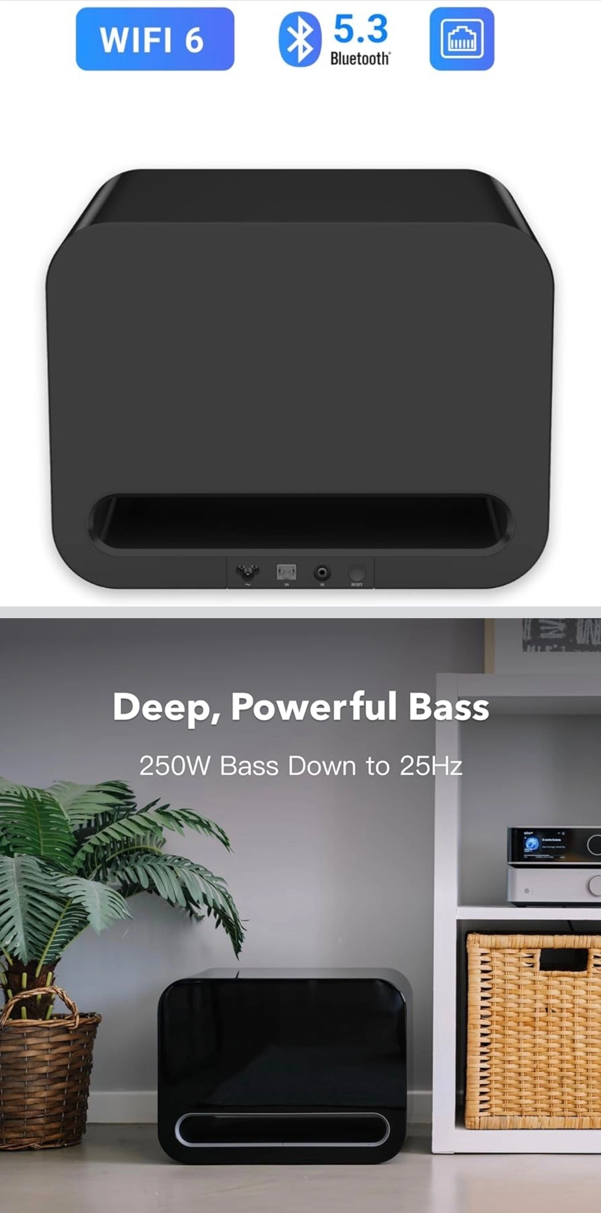 True Wireless Flexibility – Next-gen Wi-Fi 6 and Bluetooth 5.3 let you place the sub anywhere near power; RCA input adds instant compatibility with any receiver or soundbar.