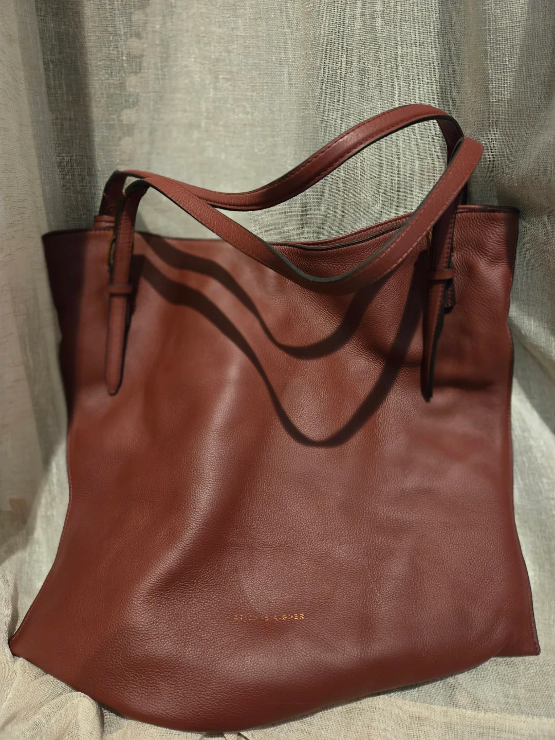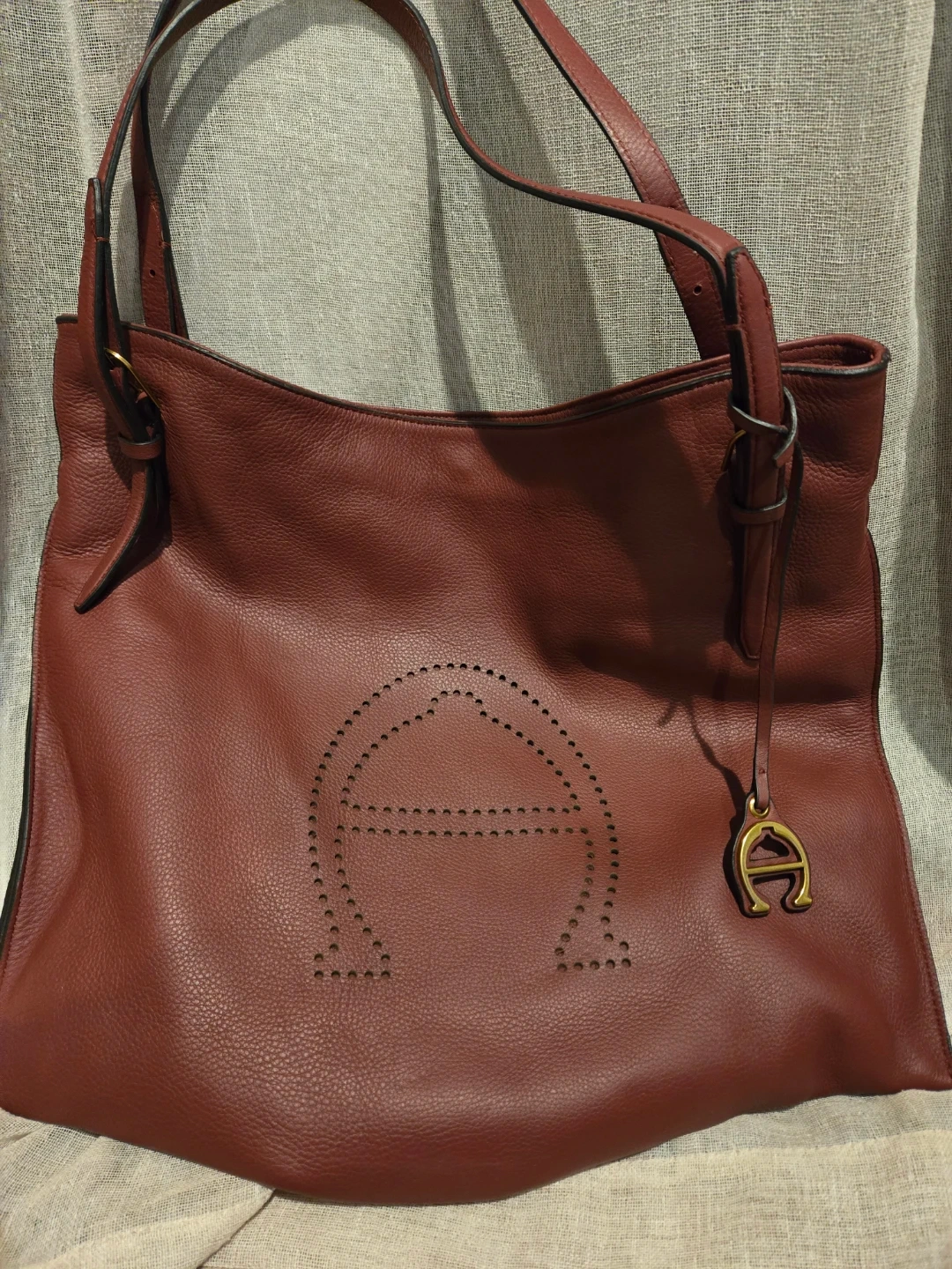 This is an Etienne Aigner leather tote bag in a beautiful wine color. It's a stylish and functional bag for everyday use! The bag is in good condition.