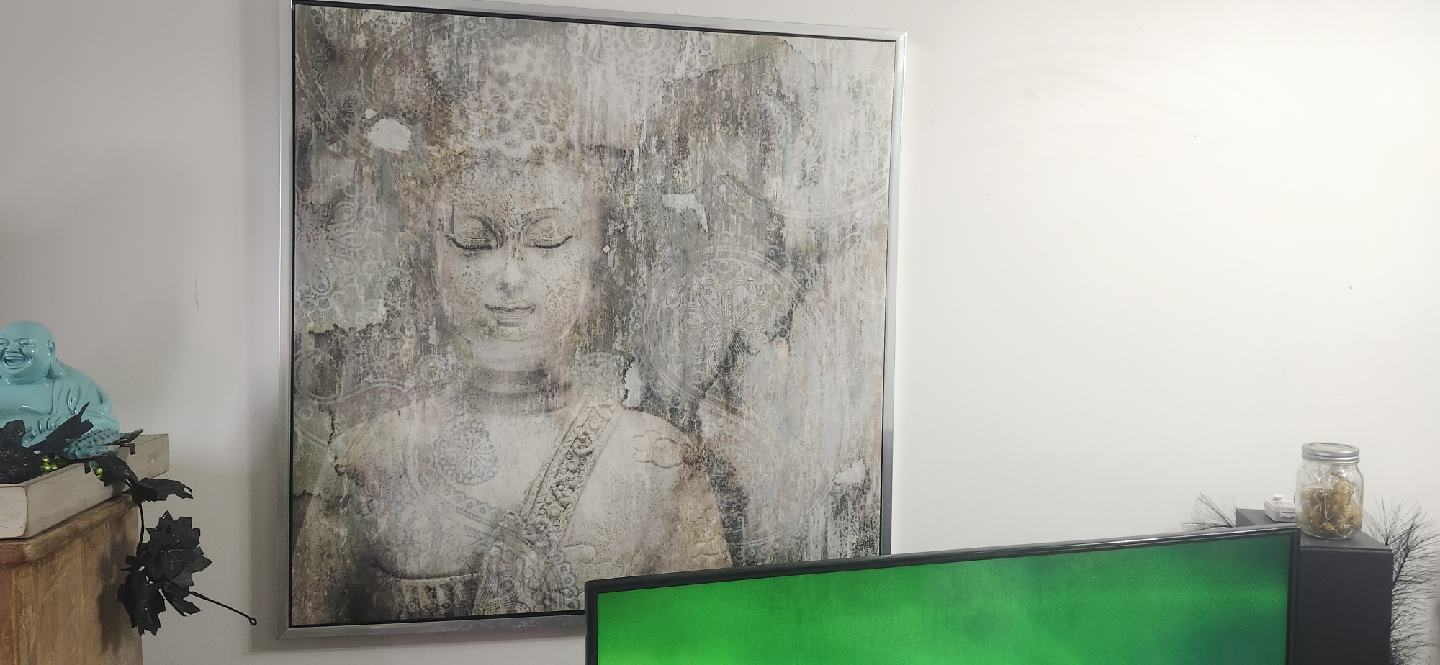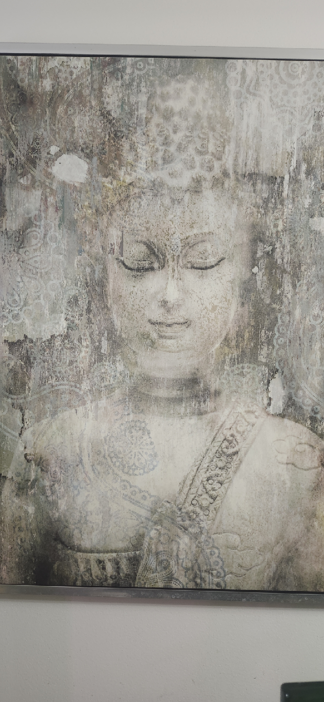 Selling a framed Buddha wall art piece. It's in great condition and would look lovely in any home. The frame is a simple silver colour that complements the artwork nicely.
