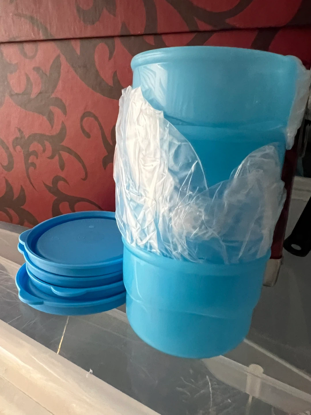I have a set of 4 blue Tupperware stacking snack canisters for sale. They are brand new and ready for a new home! Perfect for children’s snacks, pantry organization or refrigerator storage of. Small portion of food.