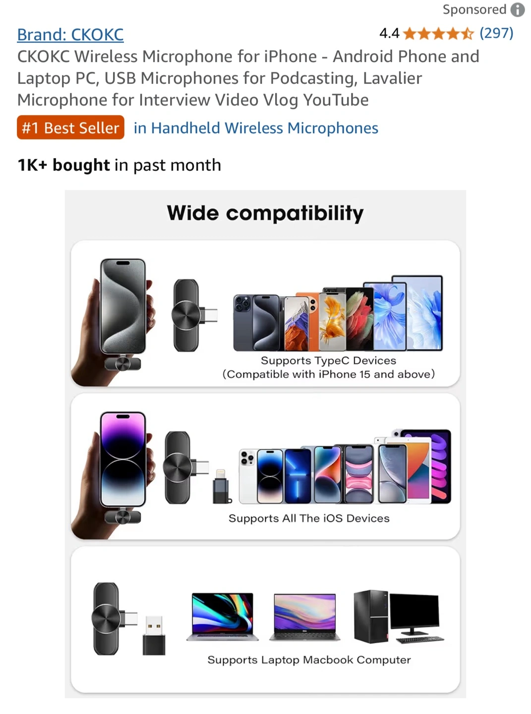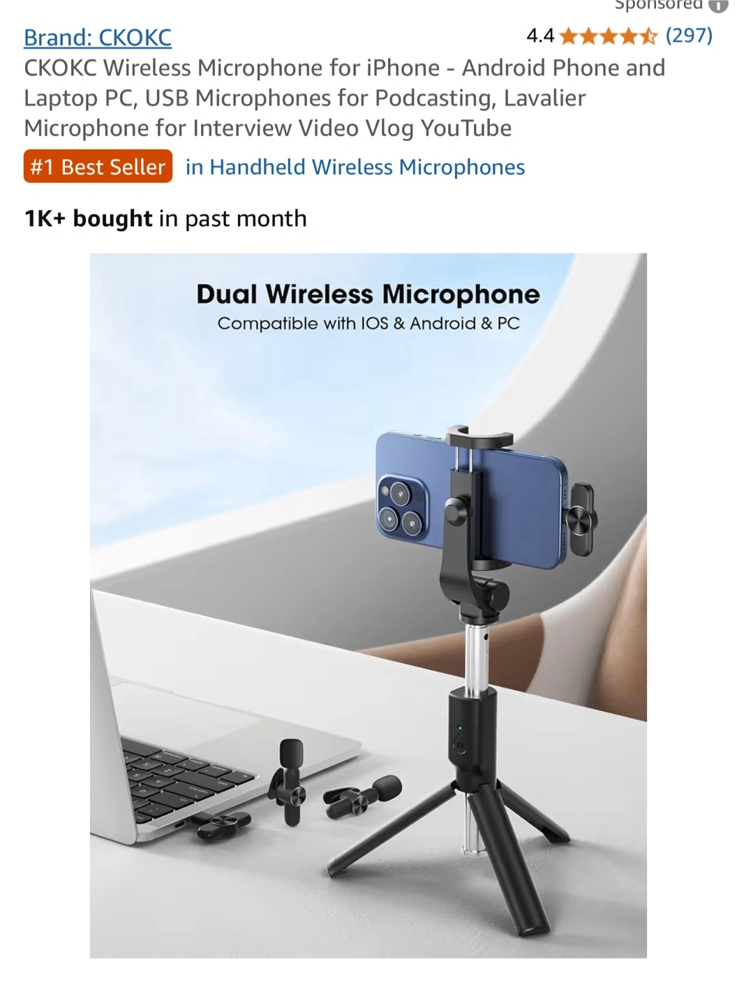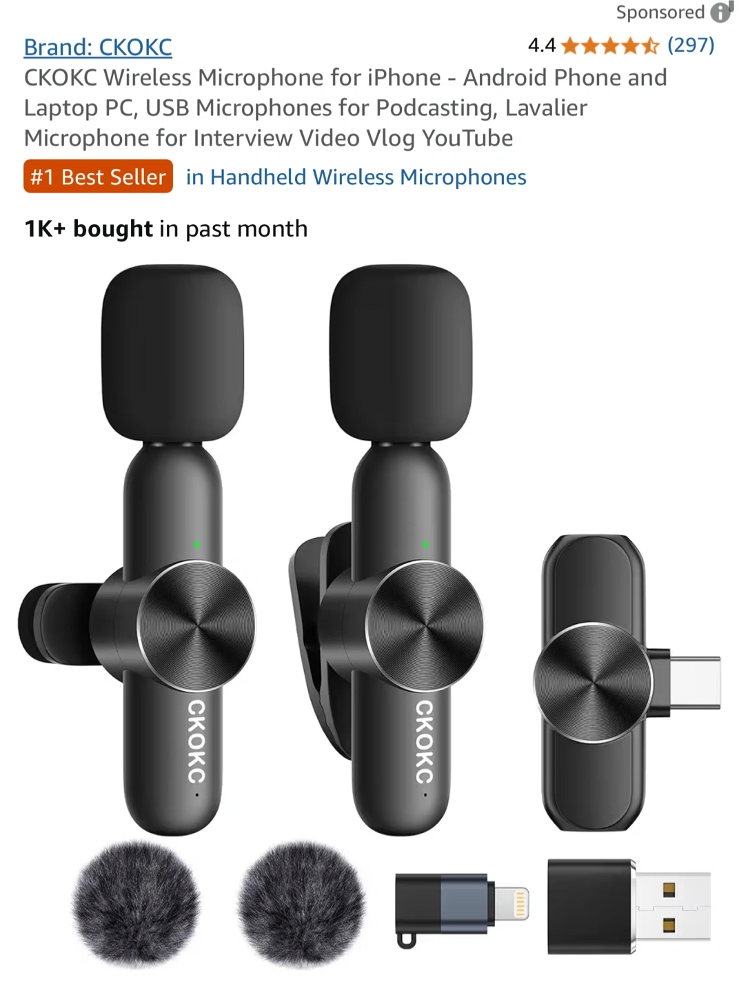 Brand new CkOkc Wireless Microphone, perfect for iPhones, Android phones, PCs, and USB devices, ideal for podcasting, lavalier use, interviews, video vlogs, and YouTube content creation.