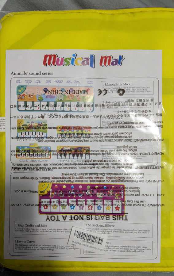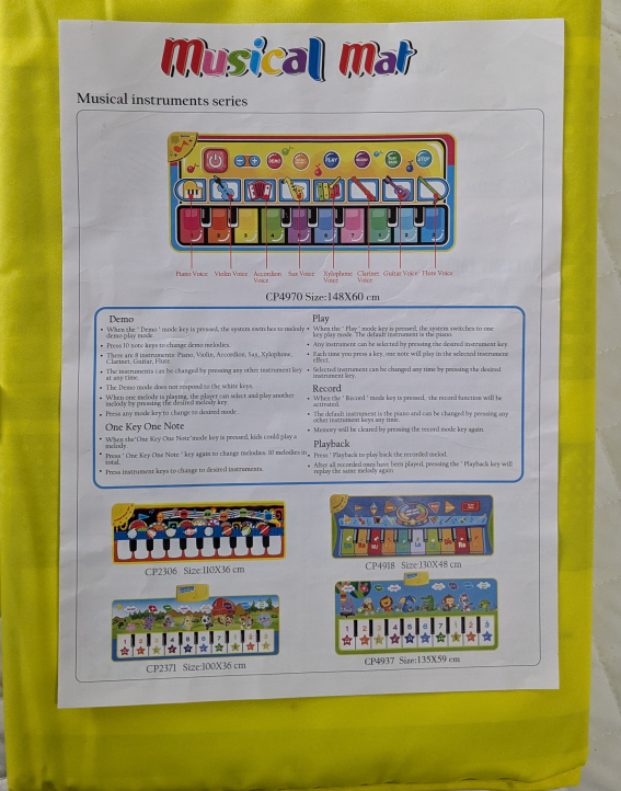 This musical mat is perfect for kids! It features both instrument sounds and animal sounds for interactive play. It's made of soft non-woven fabric and is easy to carry. The mat is foldable and safe for kids aged 3+! Great for developing language skills and hand-foot coordination. if the ad is still up it's available