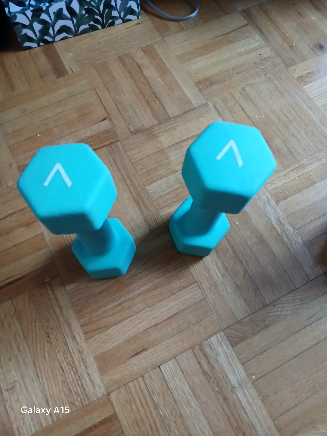 Selling a pair of aqua dumbbells in a bright blue colour. These are great for low-impact water workouts. They're hexagon-shaped to prevent rolling. Perfect for your home gym!
